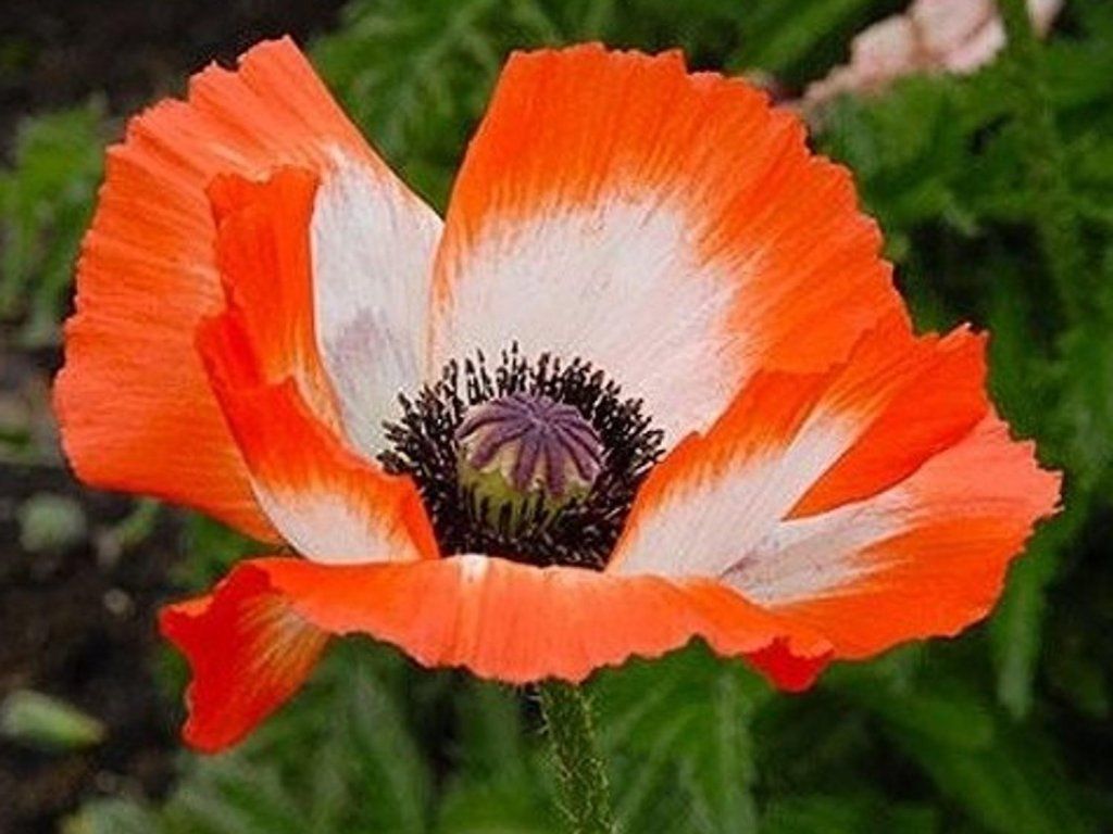 Orientalischer Mohn 'Pinnacle' - eine sehr interessante Sorte mit großen, leuchtend orange-weißen Blüten, die sich auch zum Schnitt eignen. Er erreicht eine Höhe von bis zu 90 cm, die Blüten erscheinen ab Juni und dann wieder im September. Geeignet für sonnige Standorte.