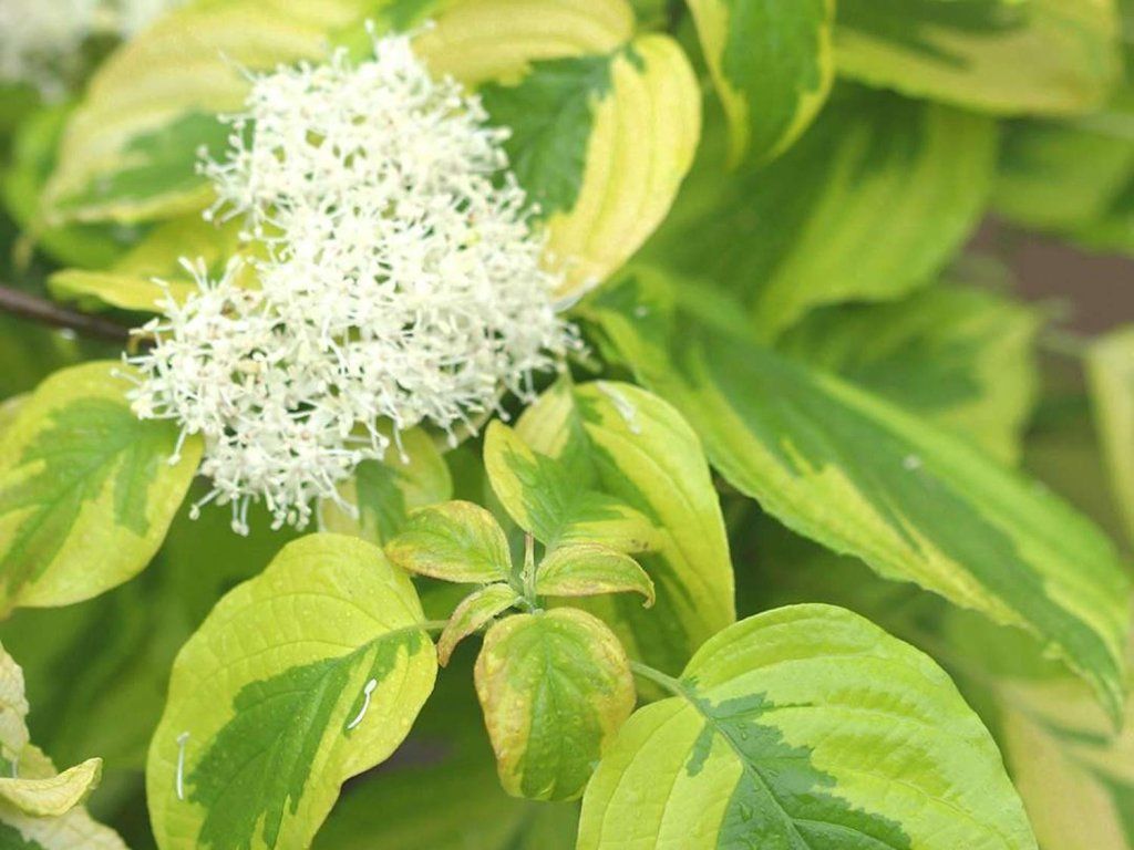 Pagoden-Hartriegel 'Golden Shadows'- ein laubabwerfender Zierstrauch mit kompakter Form, der etwa 3-4 m hoch wird. Er bildet eine dichte Krone, deren Äste horizontal wachsen und buchstäblich mit dekorativen Blättern bedeckt sind. Diese haben eine leuchtend gelbe Farbe mit einem smaragdgrünen Fleck in der Mitte des Blattes. Cremefarbene Blüten erscheinen Ende April und schmücken den Strauch bis Ende des Frühlings. Die Frucht ist eine blau-schwarze Beere. Mit dem Einsetzen des Herbstes nehmen die Blätter violette Farbtöne an. Ein außergewöhnlich schöner und interessanter Strauch, der einen Platz als Solitär in Ihrem Garten verdient.