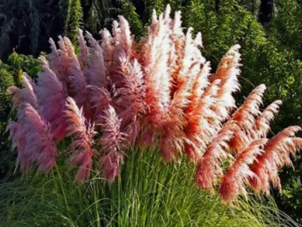 Pampasgras 'Rose Plume' - atemberaubendes und attraktiv gefärbtes Gras, das bis zu 2 Meter hoch und ähnlich breit wird. Es zeichnet sich vor allem durch wunderschöne rosa Wedel aus, die von Juli bis September erscheinen. Im Vergleich zu anderen Sorten sind sie relativ größer und voluminöser. Es bildet einen schönen Kontrast zu grün-silbrigen Stielen und Blättern. Es ist sehr anspruchslos und widerstandsfähig gegen Frost und Trockenheit. Es ist die ideale Wahl für die Einzelpflanzung, findet aber auch in Gruppenpflanzungen seinen Platz.