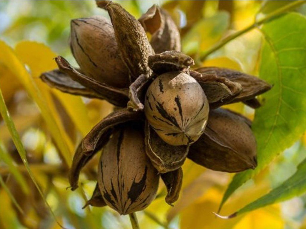 Pekannussbaum - lateinisch Carya illinoinensis, stammt aus Mittel- und Südamerika, wo er entlang von Flüssen und in fruchtbaren Tieflagen wächst. In seiner Heimat gehört er zu den bedeutendsten Obstbäumen und wird seit Jahrhunderten für seine hochwertigen Früchte angebaut. In europäischen Gefilden gilt er als vielversprechender Obstbaum für die wärmsten Regionen. Im ausgewachsenen Zustand erreicht er eine Höhe von ca. 20–30 m und bildet eine breite, regelmäßig verteilte Krone mit einer Breite von 12–18 m. Die Blätter sind unpaarig gefiedert, bestehen aus 9–17 schmalen Blättchen, sind frischgrün gefärbt und verfärben sich im Herbst gelblich. Die Blüte erfolgt im Mai mit unscheinbaren männlichen Kätzchen und weiblichen Blüten an den Triebspitzen. Die Früchte reifen im Oktober bis November, sind länglich, mit einer glatten, braunen Schale und einem feinen Kern mit süßem Geschmack. Die Nüsse enthalten einen hohen Anteil an hochwertigen Ölen, Proteinen und Mineralstoffen und werden sowohl in der Konditorei als auch in der kalten Küche geschätzt. Für eine regelmäßige Fruchtbildung ist die Anwesenheit mehrerer Exemplare oder kompatibler Sorten vorteilhaft, da die Bestäubung überwiegend fremdbestäubend ist.