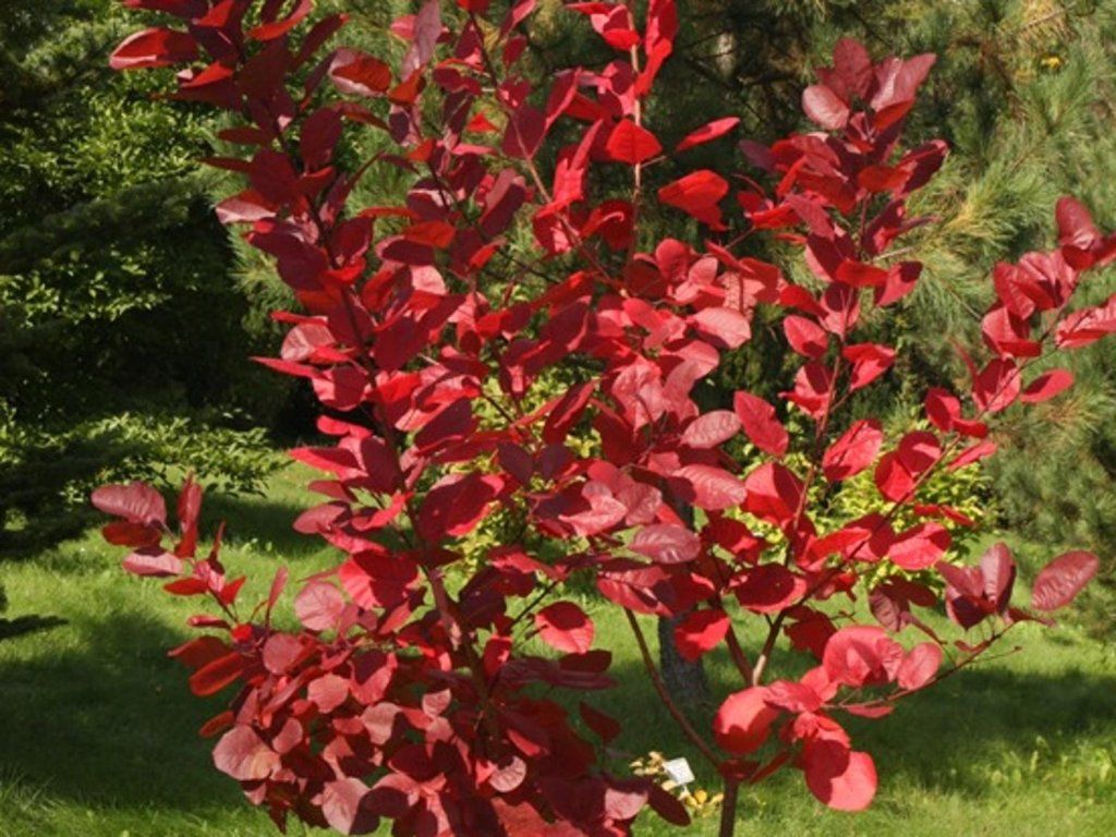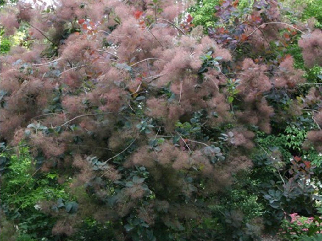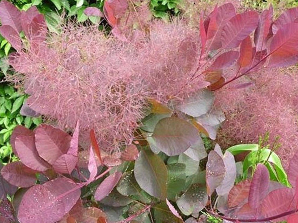 Perückenstrauch 'Grace' <\/strong>- handelt es sich um eine rotlaubige Sorte, nur die Intensität der Färbung ändert sich. Frisch sprießende Blätter sind breit elliptisch, hellrot. Mit Beginn des Sommers erhöht sich die Intensität der Färbung bis zu einem tiefen Weinrot. Der Herbst bringt den ganzen Strauch zum Leuchten. Zu dieser Zeit sind die Blätter leuchtend karminrot mit einem Hauch von Orange und Rosa. Im Sommer erscheinen Blüten in Form von rosa, faserigen Rispen. Im ausgewachsenen Zustand erreicht der Strauch eine Höhe von 2–4 Metern.