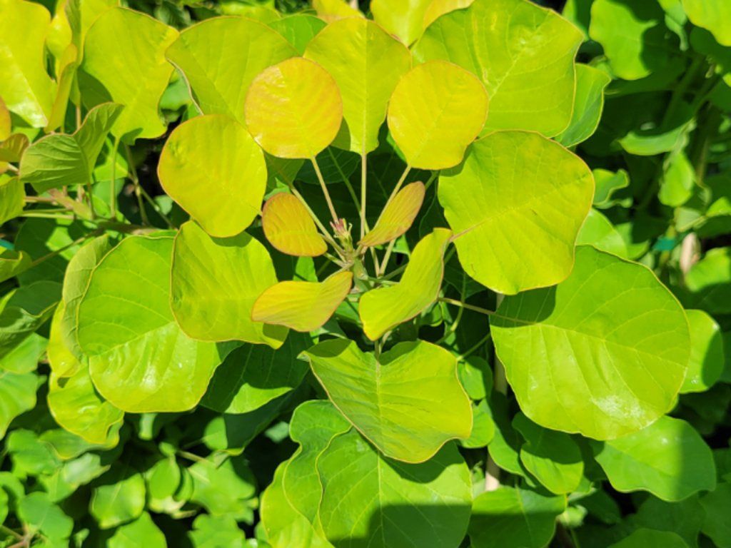 Cotinus coggygria 'Lemon Lady' - eine sehr attraktive Sorte eines Zierstrauchs, der im ausgewachsenen Zustand eine Höhe von etwa 2 - 3 m erreicht. Von Juni bis August erscheint der Blütenstand in Form einer luftigen Rispe. Er ist cremefarben. Das Hauptmerkmal dieser Sorte sind auffallend gefärbte Blätter, die im Frühjahr orange Töne aufweisen. Im Laufe der Sommermonate werden sie grün und im Herbst ändern sie ihre Farbe zu einem leuchtend gelben Farbton mit leichten Rottönen. Ideal für die Pflanzung in einem größeren Beet oder als Solitärstrauch für Gärten.
