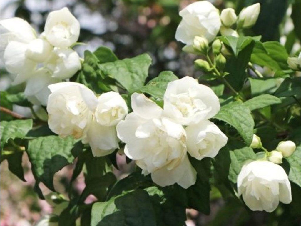 Pfeifenstrauch 'Little White Love' - kompakter Zwergstrauch mit sehr dichter Verzweigung. Im Erwachsenenalter erreicht er eine Höhe von ca. 1 m. Die jährlichen Zuwächse liegen zwischen 10-20 cm. Im Mai und Juni ist er reichlich mit reinweißen, gefüllten Blüten mit deutlichem Duft übersät. Die Blüten selbst erreichen einen Durchmesser von bis zu 4 cm. Der Strauch ist pflegeleicht, eignet sich für Kübel, an den Rand von Beeten usw.