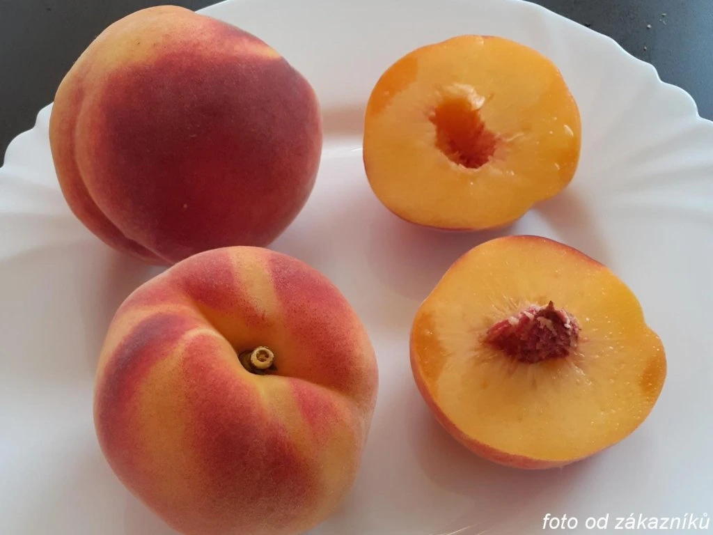 Pfirsichbaum 'Inka' - eine großfruchtige, selbstfruchtende polnische Sorte aus InHort in Skierniewice aus dem Jahr 1994. Sie wächst mäßig stark, die Kronen breiten sich dank reicher Ernten überdurchschnittlich großer Pfirsiche bald aus. Die Früchte sind groß bis sehr groß (160 – 300 g), kugelförmig, goldgelb, mit einer auffälligen, leuchtend roten Wange und Streifen. Das Fruchtfleisch ist fester, zart, sehr saftig, angenehm aromatisch, mit einem ausgeprägten, hervorragenden Geschmack. Die Steinlösbarkeit des Fruchtfleisches ist bereits vor der Ernte ausgezeichnet, so dass ein Übermaß für hausgemachte Kompotte genutzt werden kann. Wir ernten ungefähr zwei Wochen nach 'Redhaven' (um den 20. Juli). Sehr anpassungsfähige, anspruchslose Sorte, die auch in höheren Lagen Anwendung findet. Angesichts des erheblichen Erntegewichts empfehlen wir das Anbinden oder Unterstützen der Äste. Hält gut Frost und Kräuselkrankheit stand. Wir empfehlen!