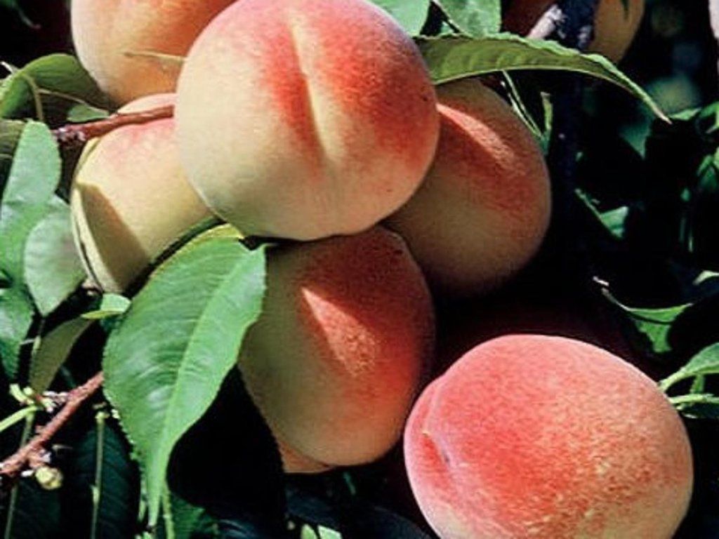 Pfirsichbaum 'Elberta' - ein alter, bewährter Klassiker aus Georgia, eine Kreuzung der Sorten ‘Pavie chinese‘ und ‘Early Crawford‘ aus dem Jahr 1870! Die Bäume wachsen kräftig und bilden mächtige, aufrechte und breite Kronen. Die Blütenknospen sind in den oberen 2/3 der jungen Triebe verteilt. Die Pfirsiche sind groß (140–170 g), oval-eiförmig mit einer breiten Bauchnaht. Die grundlegende grün-gelbe Schalenfarbe wechselt auf der sonnenbeschienenen Seite zu einer roten Backe, die stellenweise in dunkle Sprenkel übergeht. Das Fruchtfleisch ist gelb, fein faserig, süß-säuerlich, mit einer bukettartigen Bitterkeit, angenehmer Würze, insgesamt ausgezeichnet. Reift etwa 30 Tage nach ‘Redhaven‘ (erste Septemberdekade). Eine unverzichtbare Sorte für wärmere Lagen in fruchtbaren Gebieten, wo sich ihre seit langem bewährten Qualitäten voll entfalten. Selbstfruchtbar mit frostbeständigen Blüten.