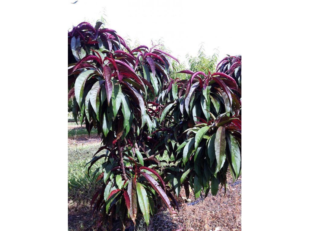 Pfirsich 'Honey Red' - eine faszinierende Zier- und Nutzpflanze aus der Gruppe der sogenannten Rotlaub-Pfirsiche. Dieser Laubbaum erreicht eine Höhe von 120-150 cm und bildet eine ausladende, mitteldichte Krone. Die Pflanze ist durch ihr Laubwerk absolut einzigartig; die Blätter sind beim Austrieb dunkelweinrot bis purpurrot und behalten diese Farbe für einen Großteil der Saison (in heißem Sommer können sie leicht grünlich werden). Sie ist voll frosthart (bis -25 °C), benötigt aber wie alle Pfirsichbäume einen warmen, sonnigen und geschützten Standort. Der Hauptästhetik- und Nutzgewinn von 'Honey Red' liegt in der Kombination aus visueller Attraktivität und hochwertigen Früchten. Im April blüht der Baum mit wunderschönen, tiefrosa Blüten, die vor dem Hintergrund dunkler, austreibender Blätter sehr dekorativ wirken. Die Sorte ist selbstfruchtbar. Die Früchte reifen im Laufe des August. Sie sind mittelgroß, kugelförmig, mit einer gelb-orangen Schale, die größtenteils von einer leuchtend roten Backe bedeckt ist. Das Fruchtfleisch ist gelb, sehr saftig und zeichnet sich durch einen hohen Zuckergehalt mit Honignote aus, was der Sorte ihren Namen gab. Der Stein lässt sich bei vollreifen Früchten gut vom Fruchtfleisch lösen.
