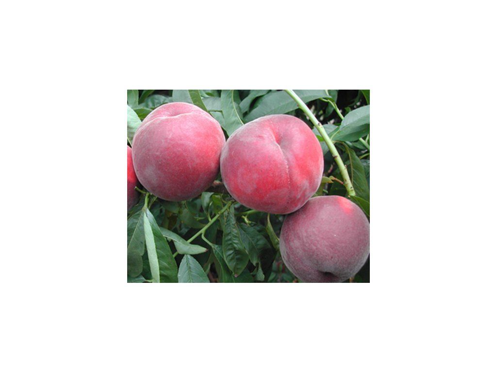 Pfirsich 'Royal Time' - mittelfrühe Sorte (reift 3 Tage nach Redhaven), mit regelmäßig geformten großen Früchten (bis 195g) in tiefroter Farbe. Das Fruchtfleisch ist intensiv gelb, fest, mit ausgewogenem Geschmack.