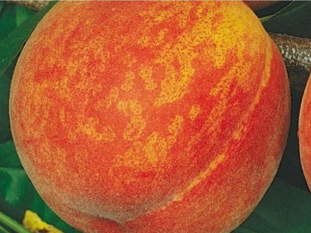 Pfirsich 'Tardibelle' - sehr späte, attraktive Sorte, ursprünglich aus Frankreich. Reift bis zu 30 Tage nach der Sorte Redhaven. Die Früchte sind attraktiv, mit einer grundlegenden gelben Schalenfarbe, die unregelmäßig von einer orange-roten Wangenpartie überlagert wird. Das Hauptmerkmal dieser Sorte ist das feste, gelbe Fruchtfleisch und der ausgewogene Geschmack. Die Ernte beginnt in der ersten Septemberhälfte.
