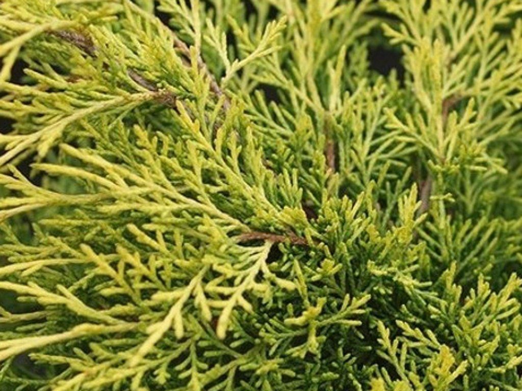 Juniperus Pfitzeriana 'Blound'- Eine Sorte, die eine Höhe von 1 m und eine Breite von 1,5 m erreicht. Er ist daher etwas höher als der kriechende Wacholder. Die Nadeln haben eine frische grüne Farbe. Er verträgt Rückschnitt und Formgebung sehr gut. Er bevorzugt sonnige Standorte, verträgt aber auch leichten Halbschatten und jeden gut durchlässigen, leicht feuchten Boden. Voll frostbeständig bis -34 °C.