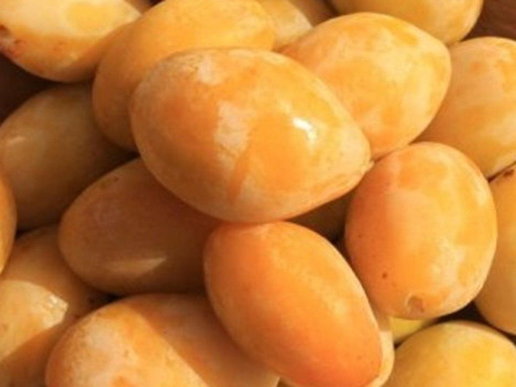 Pflaume 'Colora' - Sommerart, mit mittelgroßen bis großen Früchten ovaler Form. Die Farbe der Schale ist gelb-grün, in voller Reife honiggelb. Das Fruchtfleisch ist ebenfalls gelb, fest. Der Geschmack ist aromatisch, saftig. Die Ernte beginnt ab der zweiten Hälfte des Juli. Ein geeigneter Bestäuber ist die Nancymirabelle.