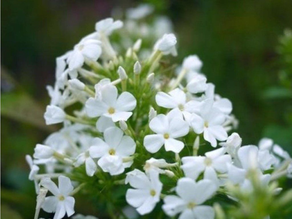 Phlox 'Weisse Wolke' - eine höhere Phlox-Sorte, die einen dichten, kompakten und reich blühenden Horst bildet, der eine Höhe von 80 - 100 cm erreicht. Ab Juli bildet sie üppige Blütenstände in reinweißer Farbe, die ein angenehmes Aroma verströmen und sich hervorragend von den dunkelgrünen Blättern abheben. Die Blätter sind lang und am Ende spitz zulaufend. Die Staude eignet sich für Gruppenpflanzungen oder für klassische Blumenbeete. Sie wird sich in jeder Staudenpflanzung gut machen und eignet sich auch hervorragend zum Schnitt.