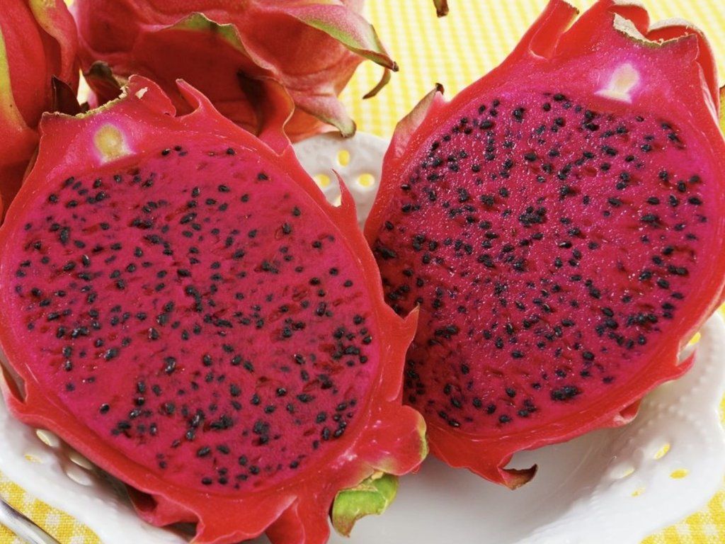 Pitaya hybridum - Hylocereus hybridum bezeichnet eine Gruppe von Zuchtsorten der tropischen Kaktusart, die als Pitaya oder Drachenfrucht bekannt ist. Arten der Gattung Hylocereus stammen aus trockenen tropischen Regionen Mittelamerikas und des nördlichen Südamerikas, wo sie als kletternde oder hängende Kakteen wachsen und oft Bäume oder Felswände als Stütze nutzen. Moderne Hybrid-Sorten entstanden durch die Kreuzung der Arten Hylocereus undatus, Hylocereus costaricensis und verwandter Arten mit dem Ziel, Fruchtgröße, Geschmack und Ertrag zu verbessern. Die Pflanze bildet lange, dreikantige, gegliederte Triebe mit kurzen Dornen, die mit Unterstützung eine Länge von etwa 2–4 m erreichen können. Im Sommer, normalerweise zwischen Juni und August, erscheinen große weiße Blüten, die bis zu 25–30 cm lang sind. Die Blüten öffnen sich abends und blühen nur eine Nacht, wobei sie nachtaktive Bestäuber anlocken. Nach der Bestäubung entwickeln sich ovale Früchte mit einer auffallend rosa oder roten Schale und einem weißen bis violetten Fruchtfleisch mit kleinen schwarzen Samen. Das Fruchtfleisch hat einen leicht süßen Geschmack mit einem leicht erfrischenden Ton, der an Kiwi erinnert. Die Früchte enthalten Vitamin C, Ballaststoffe und Antioxidantien. In der Küche werden sie frisch in Obstsalaten, Desserts oder Getränken verwendet.