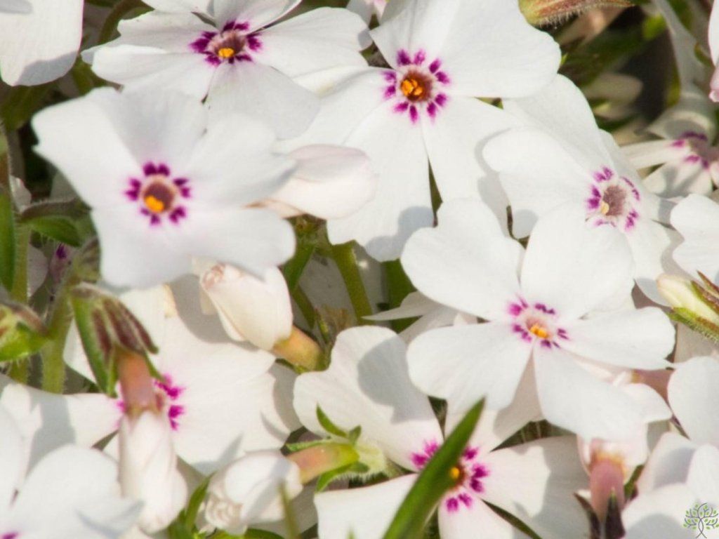 Phlox subulata 'Amazing Grace' - stammt aus trockenen, steinigen Standorten im östlichen Nordamerika, wo sie auf flachen Böden, an Felsvorsprüngen und an sandigen Hängen wächst. Sie bildet kriechende, dicht verzweigte Triebe, die sich leicht am Boden anhaften und nach und nach den Bewuchs verdichten. Die Sorte 'Amazing Grace' wächst kissenförmig bis teppichartig, im ausgewachsenen Zustand erreicht sie eine Höhe von 5–15 cm und eine Breite von 30–45 cm. Das Wachstum ist mittelschnell, die Triebe wachsen in der Saison seitlich und bilden innerhalb von 2–3 Jahren ein zusammenhängendes Kissen. Die Blätter sind schmal, nadelartig, leicht steif im Griff, im Laufe des Jahres mittelgrün, in der kälteren Jahreszeit können sie leicht bronzefarben werden. Der Bewuchs behält auch außerhalb der Blütezeit eine klare Struktur, weshalb er sich als niedriger Rand von Beeten und als Füllung zwischen Steinen eignet, wo er gleichzeitig das Keimen von Unkraut unterdrückt. Im April und Mai erscheinen an den Triebspitzen dichte Blütenbüschel. Die Blüten sind sternförmig, überwiegend weiß, mit einem deutlichen rosa-purpurnen Auge, einzelne Blüten sind etwa 2–3 cm groß. Der weiße Farbton der Blüten wirkt sauber neben dunklem Stein, Kies und Holzelementen von Terrassen, weshalb er auch für Pflanzungen entlang von Treppen und auf Trockenmauern beliebt ist, wo die Triebe sanft über den Rand hängen. An Hängen hilft das Wurzelsystem, die Oberfläche zu befestigen und mildert den Übergang zwischen Rasen und Bepflanzung. In der Komposition ergänzt sie sich natürlich mit Steinkraut, Gänsekresse, Schleifenblumen, Fetthennen, Hauswurzen und Thymian, und passt auch gut zu Frühlingszwiebelblumen in Weiß- und Gelbtönen, wie zum Beispiel Narzissen oder Blausternen.