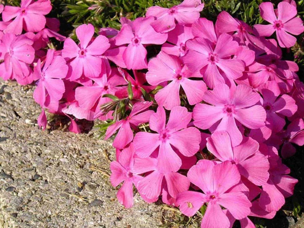 Phlox subulata 'MacDaniel's Cushion' - eine niedrig wachsende, kissenförmige Staude. Nach der Blüte werden die Pflanzen etwa auf die Hälfte ihrer Höhe zurückgeschnitten. Der Boden für den Phlox sollte mäßig trocken sein, man sollte nur wenig gießen und düngen. Der Standort sollte sonnig sein. Wir verwenden sie als Bodendecker für Steingärten, als Rand für Beete, an Mauern und an sonnigen Hängen.