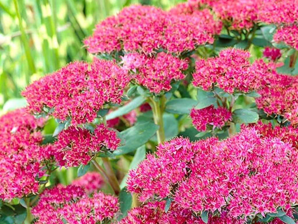 Fetthenne 'Seduction Green Leaves Rose' - attraktive Staude mit charakteristischen rosa Blüten und grünen Blättern. Sie hat grüne Blätter, die durch rosa Blüten ergänzt werden. Die Blätter sind fleischig und mittelgroß, was zum insgesamt robusten Erscheinungsbild der Pflanze beiträgt. Die Pflanze produziert attraktive rosa Blüten. Die Blüten erscheinen im Sommer auf den Stielspitzen und ziehen Schmetterlinge und andere Bestäuber an. Sie erreicht normalerweise eine Höhe von etwa 30-40 Zentimetern. Diese Pflanze hat einen kompakten Wuchs mit Blattrosetten und Blütenständen, die sich an den Stielspitzen entwickeln. Die Höhe kann je nach spezifischen Wachstumsbedingungen leicht variieren, aber im Allgemeinen ist sie von mittlerer Größe und eignet sich für den vorderen Teil von Beeten oder für Behälter. Die Stängel sind rötlich. Die Pflanze blüht von August bis September, die Blüten sind klein und leuchtend rosa. Ideale Pflanze für gemischte Beete mit hellgrünen Stauden. Sie eignet sich auch für Behälter.
