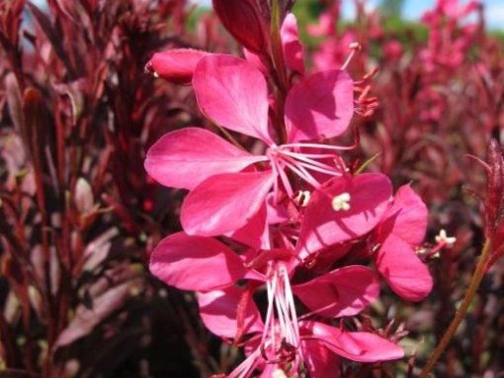 Gaura lindheimeri 'Gambit Compact Pink' - eine wunderschöne Staude, die Leichtigkeit, Luftigkeit und Eleganz vereint. Sie bildet einen niedrigen, kompakten Horst, der bis zu 40 cm hoch und ähnlich breit wird. Präriekerzen sind vor allem für ihre üppigen Blütenstände mit langanhaltender Wirkung beliebt. Bereits ab Juni sind die aufrecht wachsenden, festen Stängel mit kleinen, weinroten Knospen besetzt, die sich nach und nach zu sternförmigen, rosafarbenen Blüten öffnen. Unter geeigneten Bedingungen blüht sie bis in den Oktober hinein. Kommt in der Gruppenpflanzung mit anderen Präriekerzen, einzeln oder als Randbepflanzung von Gartenwegen hervorragend zur Geltung.