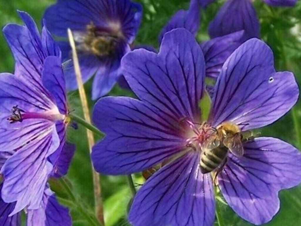 Storchschnabel hoch - reich blühende Staude, ursprünglich aus den Pyrenäen, die Bodennester aus grünen Blättern bildet. Die Blätter sind gelappt und handförmig geteilt. Ende des Frühlings und Anfang des Sommers blüht sie mit blau-violetten Blüten. Wird 40-60 cm hoch. Eignet sich für Gruppenpflanzungen, breitet sich auf größere Flächen aus. Außerdem ist sie für Steingärten und Kübel geeignet. Wächst auch in trockener, gut durchlässiger Erde.