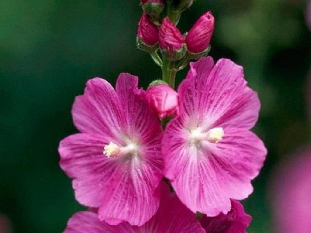 Malve ´Partygirl´ - eine Staude mit aufrechten Stängeln, gefüllt mit zarten bis seidigen Blüten in Rosa- bis Purpurrot-Tönen. Sie erreicht eine Höhe von 80-90 cm und blüht von Juni bis September. Wir pflanzen sie in voller Sonne oder Halbschatten, der Boden sollte eher sandig und gut durchlässig sein. Wir vermehren durch Teilung des Horstes.