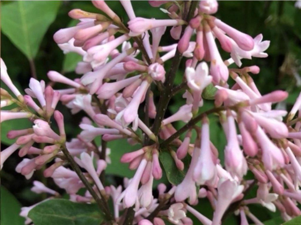 Preston-Flieder 'Esterka' - ein Strauch, der je nach Anbaubedingungen eine Höhe von 3 - 4 m und eine Breite von etwa 2 m erreicht. Die Wuchsform ist aufrecht, die Krone ist ovaler geformt. Die Blätter sind einfach, herzförmig, größer und laubabwerfend. Sie haben eine frische grüne Farbe, mit Beginn der Herbstmonate färben sie sich in Gelbtönen. Die Knospen sind karminrosa gefärbt, nach dem Öffnen sind sie tiefrosa, standardmäßig röhrenförmig und in etwa 10 cm langen Rispen angeordnet. Sie duften sehr süß, was Bienen und andere Insekten anlockt. Blüht im Juni. Sie kommt als Solitärpflanze gut zur Geltung, findet aber auch in Gruppenpflanzungen ihren Platz.