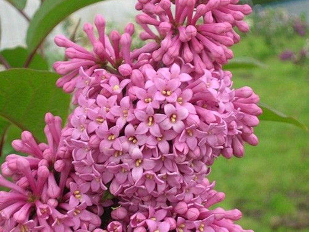 Flieder 'Hiawatha' - ein laubabwerfender Strauch, der eine Höhe von 2-3m erreicht. Er blüht relativ spät, erst im Mai und Juni. Die Blüten sind einfach geformt und haben eine hellrosa bis dunkelviolette Farbe sowie einen spezifischen, intensiven, exotisch süßen Duft. Die Sorte ist anspruchslos und relativ widerstandsfähig, für alle Gärten geeignet.