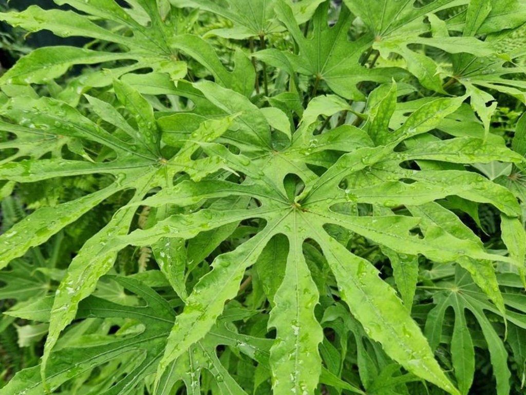 Prodara polycarpa 'Green Fingers' Fatsia japonica 'Green Fingers'