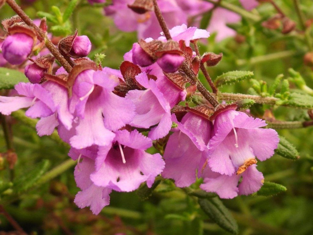 Prostanthera 'Rosette' - sehr attraktiver immergrüner Strauch aus Australien. Er erreicht eine Höhe von etwa 50 cm und eine ähnliche Breite. Die Zweige sind rund und tragen frischgrüne Blätter, die nach dem Zerdrücken aromatisch sind und nach Minze duften. Die Blüten wachsen in den Blattachseln, sind dunkelrosa gefärbt und erscheinen im Juni und Juli. Er kommt sowohl im Steingarten als auch in Ziergefäßen schön zur Geltung.