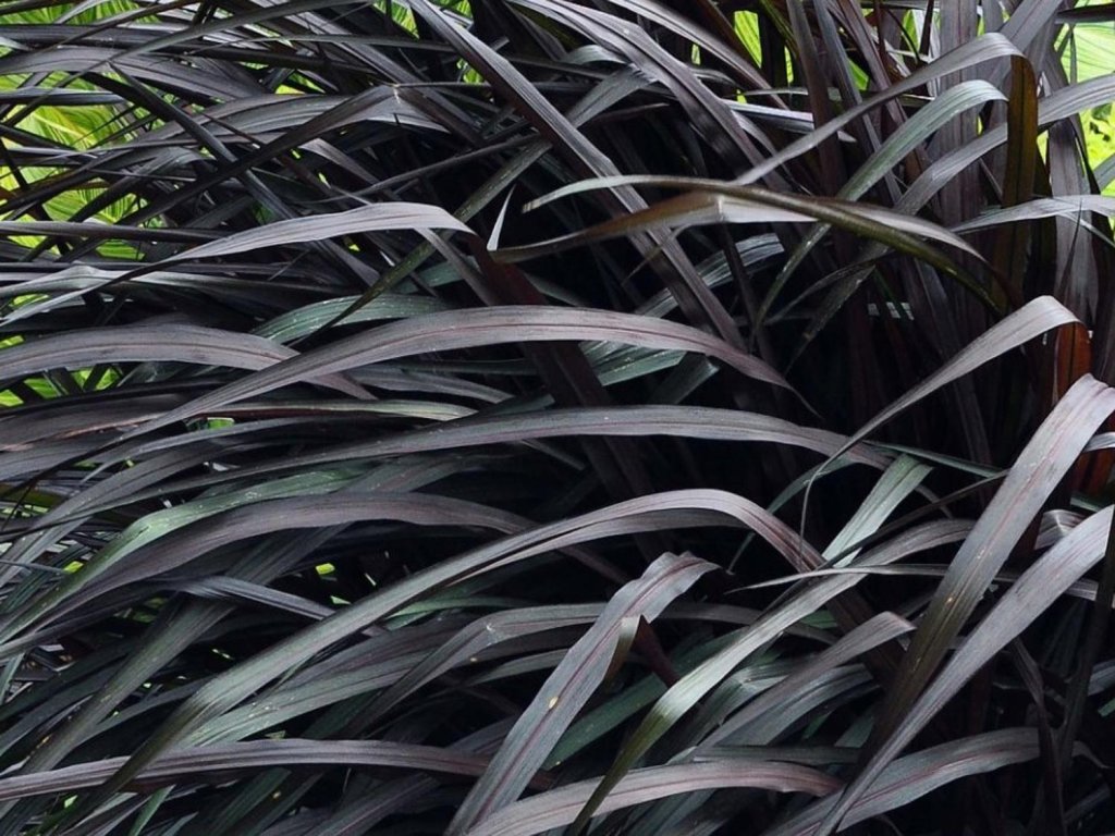 Dochan purpureum 'Vertigo' - Ein Gras, das eine Höhe von 120-200 cm erreicht. Die spitz zulaufenden Blätter haben eine violette Färbung mit einem Hauch von Schwarz. Eine sehr interessante Staude, die für Steingärten geeignet ist.