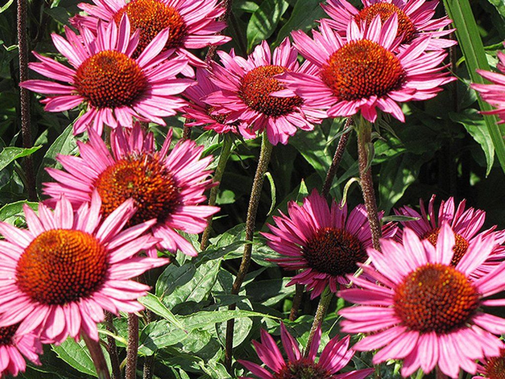 Rote Scheinsonnenhut 'Vintage Wine' - Kultivar Sonnenhut mit schönen, leuchtend rosa-rot bis weinrot gefärbten Blüten. Auch dieser Sonnenhut hat seine typische orange-braune Mitte in der Blüte. Einzelne Blüten blühen an den Stielenden von Juli bis September. Wird etwa 50 cm hoch. Die Blätter sind lanzettlich, dunkelgrün und rau. Dieser Kultivar ist auch für Kübel geeignet. Die Staude ist buchstäblich ein Anziehungspunkt für Schmetterlinge, Hummeln und Bienen. Er sieht schön aus in Kombination mit mehreren Sonnenhut-Sorten gleichzeitig oder zum Beispiel im Vordergrund von niedrigeren und grünen Sträuchern.