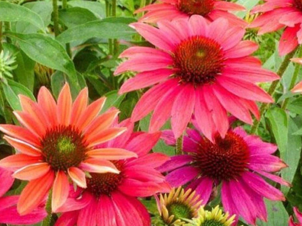 Purpur-Sonnenhut Sombrero ´Tres Amigos´ - anspruchslose Staude aus dem Mittleren Westen Amerikas und Europa. Wird oft auch als Heilkraut verwendet. Sie wächst bis zu einer Höhe von 100 cm (abhängig von der gewählten Sorte). Die gesamte Gruppe strahlt in so vielen Farben, dass es fast unmöglich ist, sie hier alle aufzuzählen, ohne eine zu vergessen. Einige Sorten beginnen bereits Anfang Mai zu blühen, am häufigsten jedoch beginnen sie im Juli und blühen bis zum Spätsommer, also bis September. Anbau: Die Pflanze bevorzugt volle Sonne und gut durchlässigen, leicht feuchten Boden. Es ist ratsam, die Blüten nach dem Verblühen abzuschneiden oder abzubrechen, aber den Stiel für weitere Knospen aufzubewahren. Eine Kombination aus mehreren Sonnenhut-Sorten sieht wunderschön aus, zum Beispiel im Vordergrund niedriger grüner Sträucher usw.