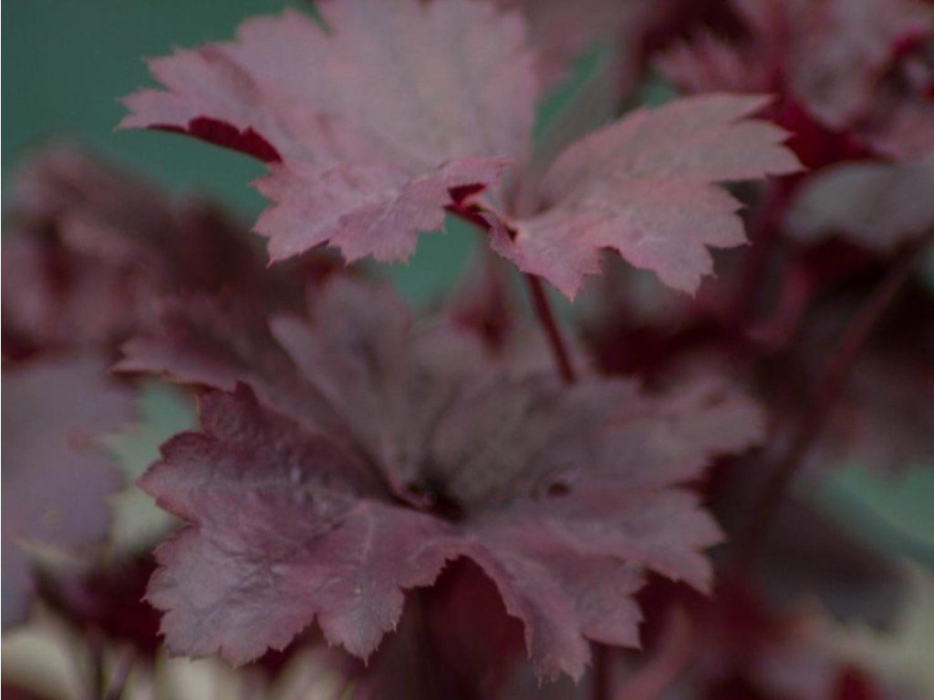 Heuchera 'Gotham' - Wird bis zu 15cm hoch. Gelbe Blüten erscheinen von Juni bis Juli. Die Blätter sind herzförmig mit gezackten Rändern. Sie haben eine wunderschöne, braun-rote Färbung. Die Blattfarbe hängt vom Standort ab. Geeignet für die Pflanzung in Gruppen oder als Einfassung und zum Schnitt.