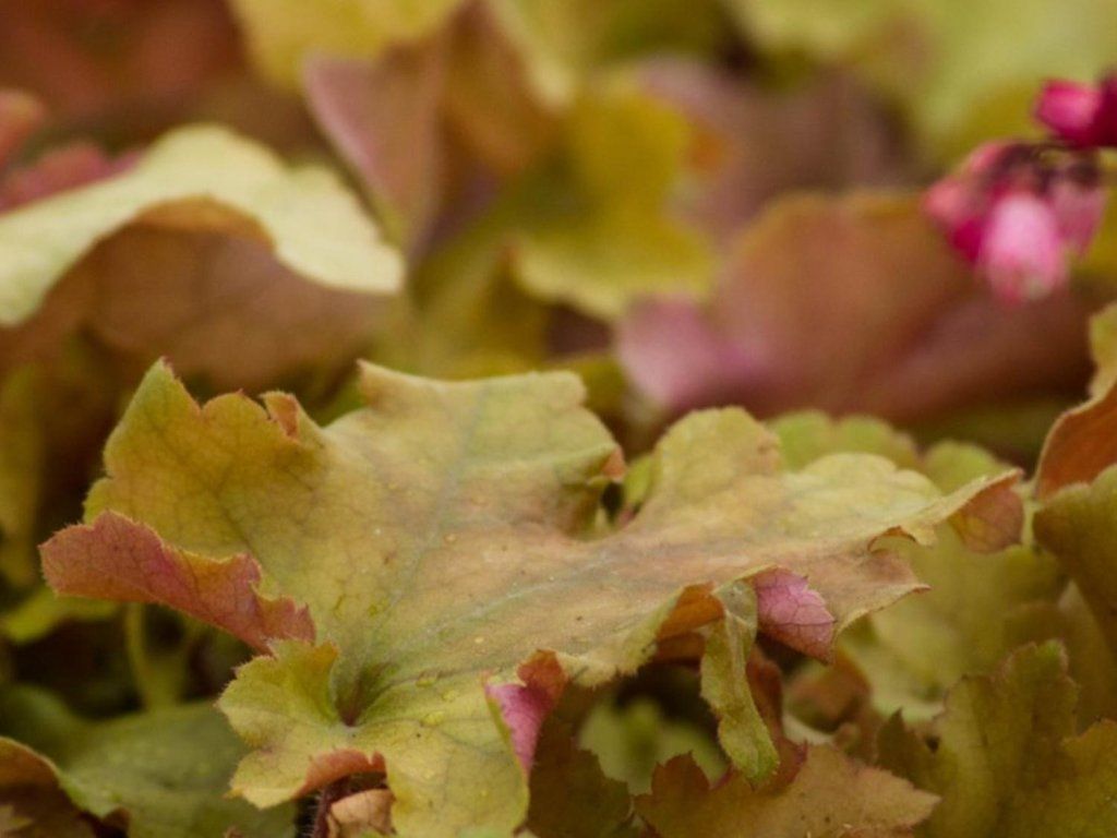 Heuchera 'Marmalade'(EU17452) - bringt mit ihrer Veränderlichkeit Farbe in Gärten. Die Sorte 'Marmalade' wurde in den USA in der Baumschule Terra Nova Nurseries in Oregon gezüchtet. Es handelt sich um eine Hybridzüchtung aus 'Amber Waves' × 'Huntsman', die 2005 mit einem Pflanzenpatent geschützt wurde. Unter tschechischen Bedingungen verhält sie sich wie eine langlebige Staude mit teilweise immergrünen Blättern, die auch außerhalb der Hauptsaison ihre Farbe behalten. Sie bildet einen moundingartigen, dichten Horst mit stark gelappten und am Rand gewellten, ledrigen Blättern. Die Färbung wechselt im Laufe des Jahres von rostbrauner Bernsteinfarbe über aprikosenfarbene Bronze bis zu gedämpften violetten Tönen, wobei die Unterseite auffallend rosa bleibt und der Pflanze auch im Dämmerlicht Tiefe verleiht. Die Blattrosette ist 25–30 cm hoch und 45–60 cm breit, in Blüte erreicht sie etwa 45–55 cm. Von Juni bis August ragen schlanke Stiele mit zarten Rispen über die Blätter hinaus. Die Knospen können braunrot wirken, nach dem Öffnen sind die Blüten klein, weißlich bis cremefarben, duftlos und dienen als kleine Nektarquelle für Bestäuber. In der Komposition bewährt sie sich als ganzjähriger Farbakzent für Beetränder, Unterpflanzungen von Sträuchern und Rosen sowie für Gefäße, wo die Blätter den Topfrand sanft überlappen. Sie harmoniert gut mit Gräsern, Funkien, Farnen und Frühlingszwiebelblumen, da der warme Farbton der Blätter die kühleren Grüntöne und silbrigen Blätter benachbarter Stauden mildert.