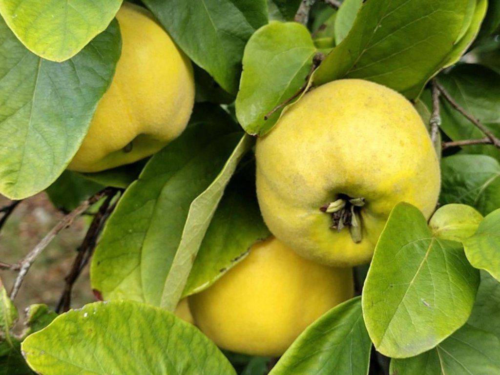 Quitte 'Kansenko' - eine sehr verbreitete und beliebte Quittensorte, die selbstfruchtbar ist und daher keine Bestäuber benötigt. Die Quittenfrüchte sind birnenförmig, reif sind sie tiefgelb und werden Ende Oktober geerntet. Die Früchte werden häufig zum Einmachen, zur Marmeladenherstellung und sehr oft zur Herstellung von Schnaps verwendet. Obwohl Quitten auch im Oktober bei voller Reife noch sehr hart sind, wird von einer langfristigen Lagerung abgeraten. Nach der Ernte werden sie daher so bald wie möglich wärmebehandelt. Der Quittenbaum ist in Bezug auf den Anbau nicht anspruchsvoll und gedeiht in fast allen Anbaugebieten.