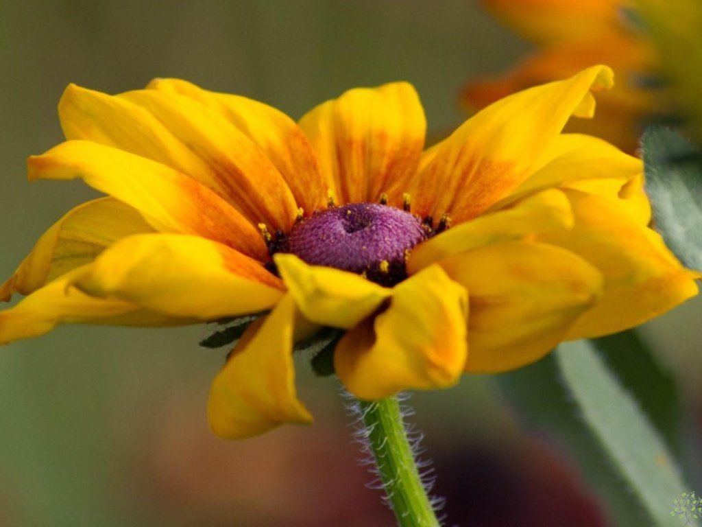 Fuchsie (Rudbeckia) behaart Summerina 'Yellow' - eine interessante Kreuzung aus den Arten Echinacea und Rudbeckia. Sie erreicht eine Höhe von 40-50 cm und eine Breite von etwa 40-45 cm. Die Blätter sind mittelgrün, leicht filzig und haben eine ausgeprägtere Blattnervatur. Ein Vorteil ist die längere Blütezeit vom Frühsommer bis zum Herbst. Die Blüten sind groß und haben einen Durchmesser von etwa 7 cm. Die Blütenblätter haben einen goldgelben Farbton, der zur Mitte hin orangefarbene Töne annimmt. Die Mitte ist deutlich braun gefärbt. Die Pflanze ist attraktiv für Hummeln und Schmetterlinge. Sie ist eine ideale Solitärpflanze für Ihren Garten.