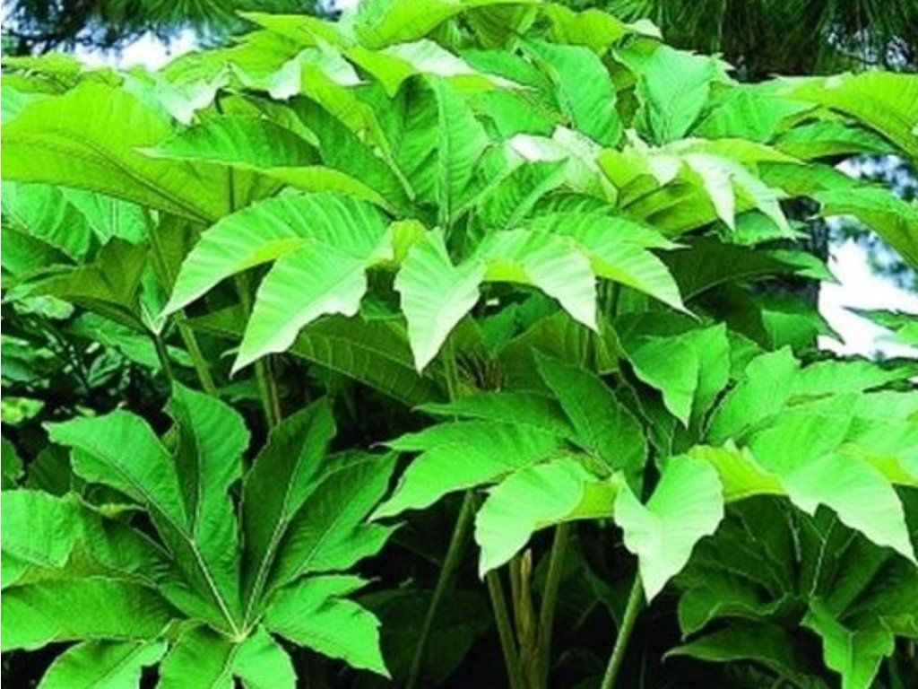 Reispapierbaum - eine markante Art aus der Familie der Araliengewächse, ursprünglich aus Süd- und Ostchina und Taiwan. Sie bildet kräftige, meist unverzweigte Triebe mit einer Blattrosette an der Spitze, sodass sie wie ein „tropischer“ Baum wirkt, obwohl es sich um ein Gehölz mit strauchartigem Charakter handelt. Die Blätter sind rundlich bis breit handförmig gelappt, üblicherweise 50–80 cm, bei gut ernährten Pflanzen auch mehr, an hohlen Blattstielen. Die Blätter sind 5–12-lappig, tief eingeschnitten, mit ausgeprägter Nervatur und auf der Unterseite oft bräunlich filzig. Aufgrund der Blattgröße ist sie windempfindlich, was die Blätter zerreißen kann. Daher wirkt sie am besten an einer warmen Mauer oder im Windschatten höherer Sträucher. Die Oberfläche ist fein filzig und bei Regen wirken die Blätter wie große Regenschirme. Die Pflanze bildet oft unterirdische Ausläufer und Triebe, wodurch sie sich mit der Zeit zu einem Horst oder lockeren Bestand ausbreitet. Ende Sommer, meist im August bis September, erscheinen über dem Laub mächtige, wollig-filzige Rispen mit kleinen cremeweißen Blüten, die bestäubende Insekten anlocken. Der Blütenstand kann auch 50–80 cm erreichen und tritt in milden Jahren regelmäßiger auf, während er in kälteren Lagen ausfallen kann. Nach der Blüte können kleine dunkle Früchte entstehen, wenn das Wetter ihre Reifung zulässt. Im Garten eignet sie sich als architektonische Dominante an einer Mauer, in einer exotischen Ecke mit Bambus, Funkien und Farnen oder im Kontrast zu Gräsern und niedrigen Sträuchern, wo die Blattform und das durch ihre Lappen durchscheinende Licht zur Geltung kommen.