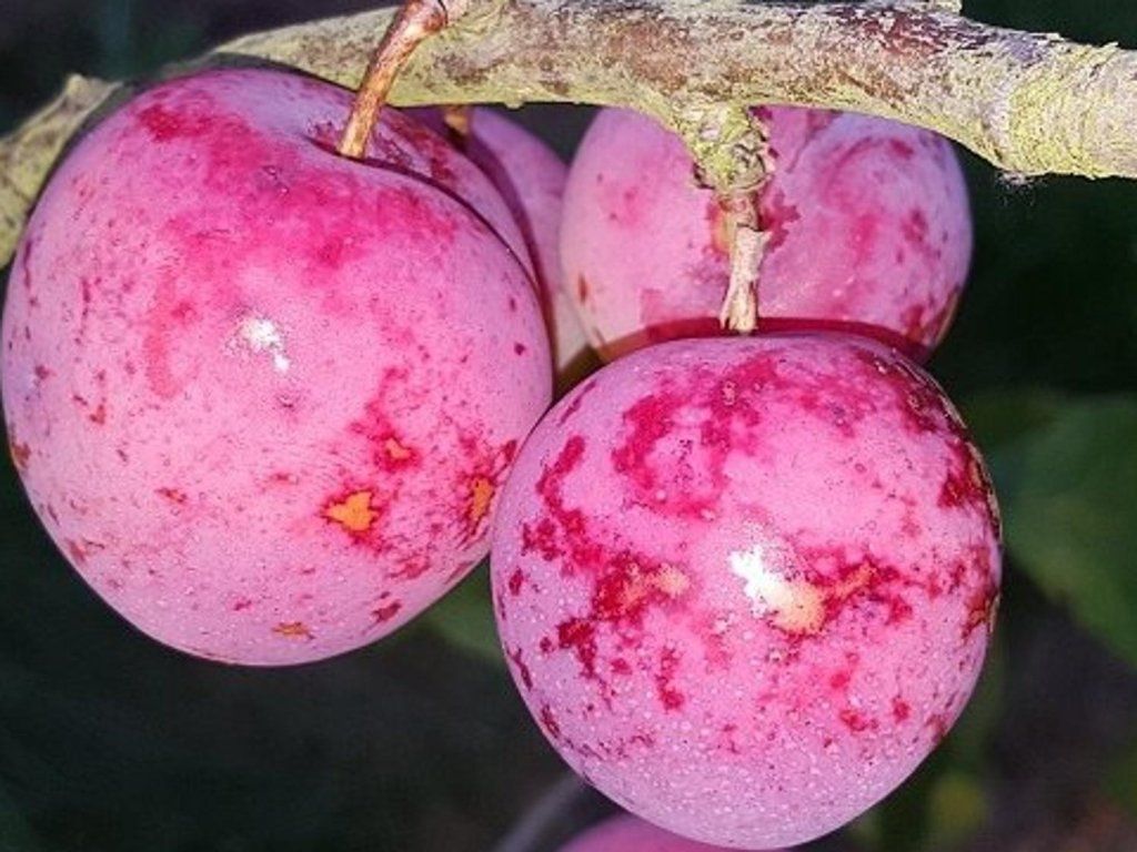 Ringlotte 'Avalon' - teilweise selbstfruchtbare Ringlotte mit attraktiven Früchten. Diese sind von runder bis leicht länglicher Form, haben eine rot-violette Farbe. Das Fruchtfleisch ist weich, ist satt goldgelb, in voller Reife fast orange. Der Geschmack ist süß, saftig, mit einer leicht würzigen Note. Der Kern lässt sich gut vom Fruchtfleisch trennen. Die Früchte reifen ab Mitte August. Sie eignen sich zum direkten Verzehr. Geeignete Bestäuber sind die Sorten Queen Victoria oder Valor.