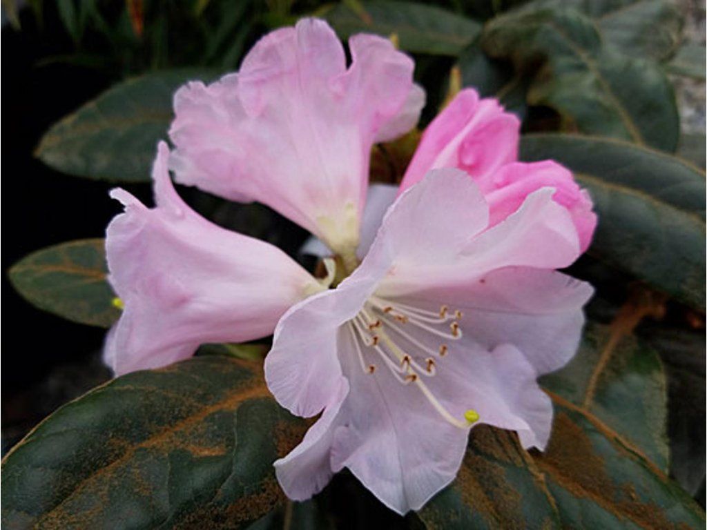 Pflege: Alle Rhododendronarten werden in leichte, nährstoffreiche und vor allem saure Erde (pH 4-5) gepflanzt. Ideal ist eine Mischung aus Substrat, Sand und Torf. Die Erde wird ständig feucht gehalten, sollte aber dennoch gut durchlässig sein. Es ist ratsam, Rhododendren dauerhaft gemulcht zu halten. Sträucher wurzeln flach, daher pflanzt man sie nicht zu tief. Wir wählen einen eher halbschattigen, ausreichend hellen Standort (im zu starken Schatten blühen sie weniger, direkte Sonne kann die Blätter verbrennen) ohne starke Zugluft.