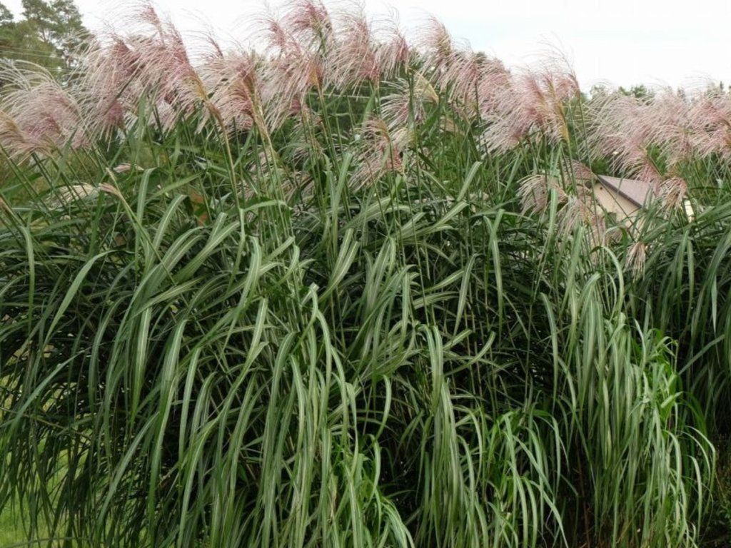Riesen-Chinaschilf 'Meidl' - eine schöne und anmutige Sorte des Riesen-Chinaschilfs, die Sie auf den ersten Blick beeindrucken wird. Im ausgewachsenen Zustand erreicht die Pflanze eine Höhe von etwa 2 - 3 m und eine Breite von etwa 1 - 1,5 m. Auf festen und hohen Stängeln wachsen Blätter, die schmal, lang und dunkelgrün gefärbt sind. An den Spitzen der Stängel erscheint im September eine wunderschöne, luftige Blüte in Weiß-Violett. Das verleiht dem gesamten Strauch ein sehr elegantes Aussehen. Ein Schnitt ist nicht notwendig, aber im Frühjahr können Sie trockene Triebe entfernen, um das Wachstum zu fördern. Sie ist pflegeleicht und voll frosthart.