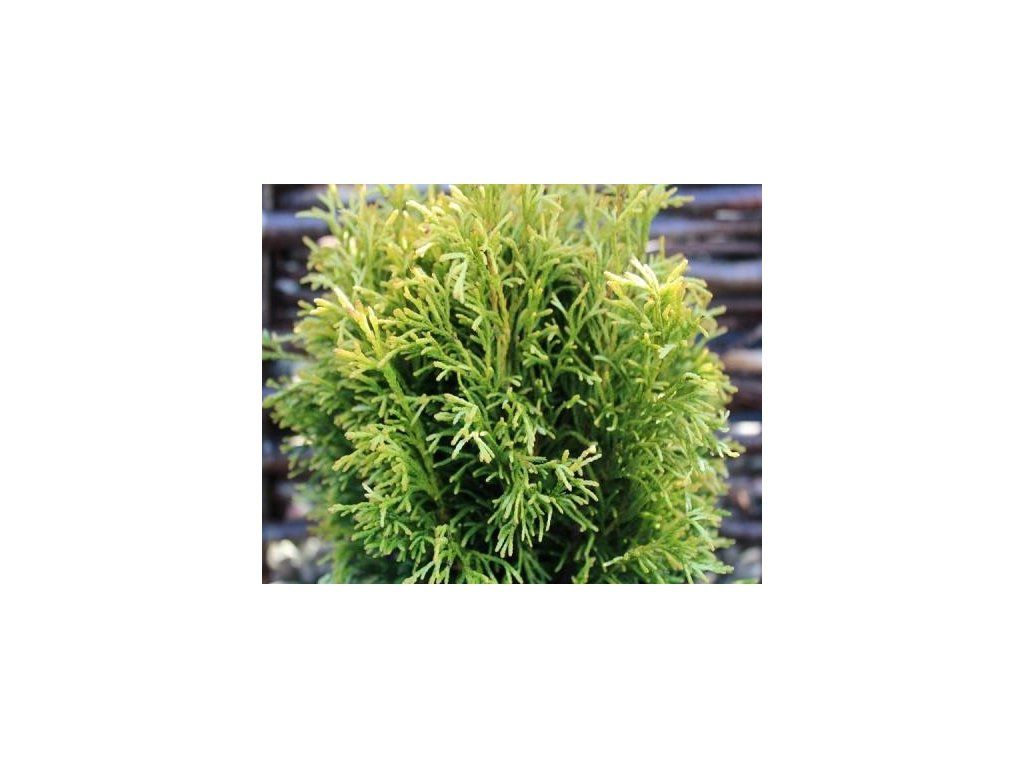 Riesen-Lebensbaum 'Rogersii' - zwergiger, langsam wachsender Strauch, gelb-grün gefärbt; im Laufe des Jahres haben die Blätter auch einen goldenen bis bronzefarbenen Schimmer. Im Erwachsenenalter erreicht er eine Höhe von 90 cm bei etwa gleicher Breite. Die jährlichen Zuwächse betragen etwa 5 cm.