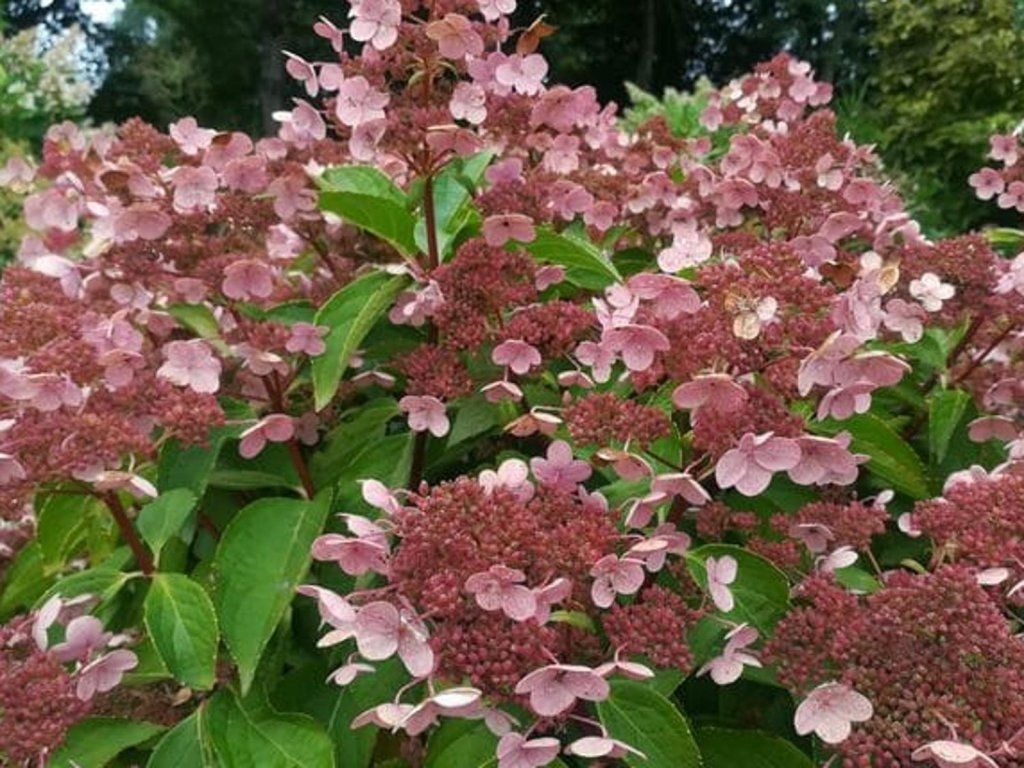 Die Rispenhortensie stellt eine schöne Pflanzenart dar, die zur Familie der Hortensiengewächse (Hydrangeaceae) gehört. Ursprünglich aus Südostchina und Japan stammend, kommt sie natürlicherweise an den Rändern von Bambusbeständen und entlang lichter Wälder an Wasserläufen vor. Dieser Strauch erreicht oft eine Höhe zwischen 1,5 und 3 m. Die Blätter sind wechselständig, spitz und gezähnt. Charakteristisch sind die kegelförmigen Blütenstände, die aus vielen kleinen Blüten bestehen. Die Blüten erscheinen ursprünglich weiß, ändern aber im Laufe der Zeit ihre Farbe zu Rosa- und Rottönen, abhängig von der Entwicklung und den pH-Wert-Änderungen im Boden. Die Rispenhortensie gedeiht auf gut durchlässigen Böden mit ausreichend Sonnenlicht und Halbschatten. Obwohl sie kälteresistent ist, sind ihre optimalen Wachstumsbedingungen mit wärmerem Klima verbunden. Sie benötigt regelmäßige Bewässerung und bevorzugt einen Boden mit neutralem bis leicht saurem pH-Wert für eine optimale Farbentwicklung der Blüten. Die Blütezeit liegt in den Sommermonaten bis in den frühen Herbst, wobei die Blüten lange an der Pflanze verbleiben können. Die Blüten sind für Bestäuber wie Schmetterlinge attraktiv, was zur Steigerung der Biodiversität in Ihrem Garten beiträgt. Die Rispenhortensie wird häufig in der Gartengestaltung und Landschaftsarchitektur für ihren ästhetischen Wert eingesetzt. Sie ist auch eine beliebte Pflanze für Schnittblumen und getrocknete Blüten, die in der dekorativen Kunst Verwendung finden. Mit ihrer Fähigkeit, sich an verschiedene Anbaubedingungen anzupassen, und ihrem hervorragenden ästhetischen Erscheinungsbild hat die Rispenhortensie die Anerkennung von Gärtnern, Landschaftsarchitekten und Pflanzenliebhabern gewonnen. Eine einzigartige Pflanze, die nicht nur die Ästhetik des Gartens bereichert, sondern auch einen biologischen und ökologischen Wert bietet.
