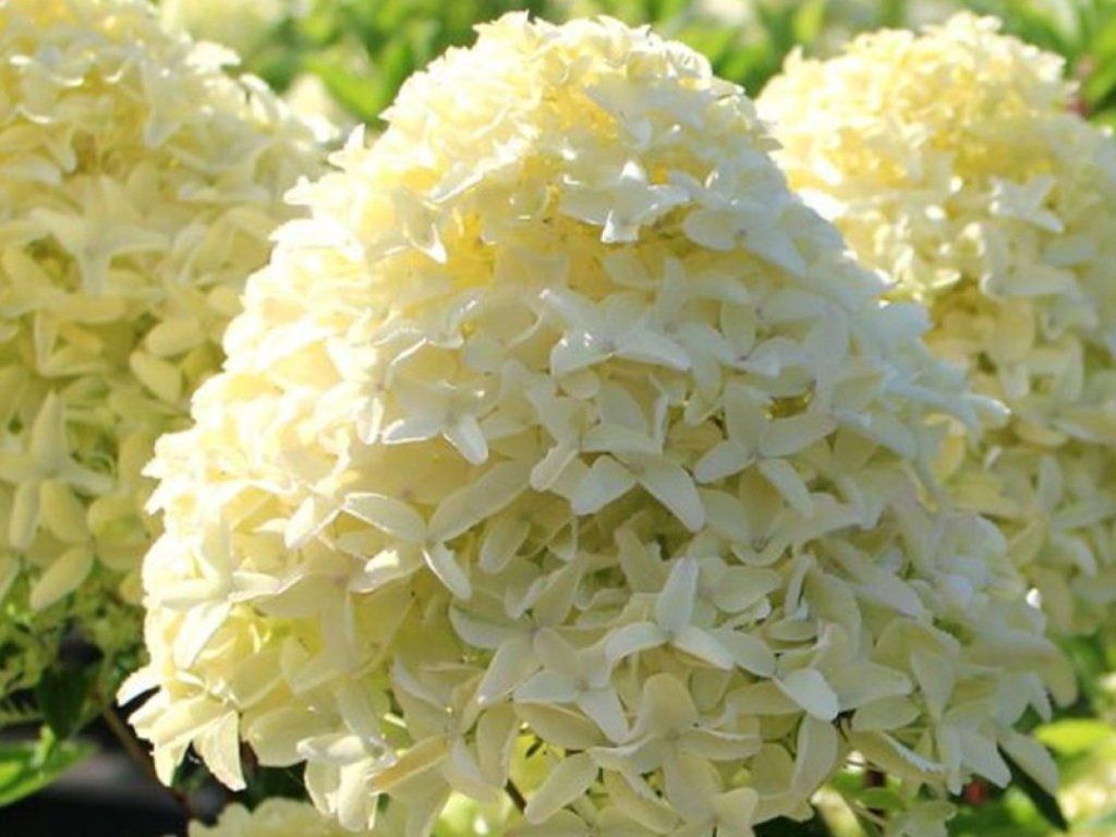 Rispenhortensie 'Gardenlights Whitelight®' - eine preisgekrönte Zwergsorte aus der innovativen Gardenlights®-Serie, die speziell für kleine Gärten und die Kübelbepflanzung gezüchtet wurde. Dieser laubabwerfende Strauch erreicht eine Höhe und Breite von nur 0,5 bis 1 Meter, was ihn zu einer der kompaktesten Hortensien auf dem Markt macht. Sie ist voll frostbeständig (bis -30 °C) und blüht dank der Blüte am neuen Holz jedes Jahr zuverlässig. Der Hauptästhetik-Vorteil liegt in der schillernden weißen Farbe und der Blütendichte. Vom Frühsommer bis zum Herbst ist der Strauch buchstäblich mit großen, festen, kegelförmigen Blütenständen bedeckt, die anfangs limettengrün sind, sich aber sehr schnell in ein strahlendes Schneeweiß verwandeln. Im Gegensatz zu vielen anderen Rispenhortensien behält diese Sorte ihre reinweiße Farbe sehr lange, bevor sie im Herbst zartrosa wird. Sie hat außergewöhnlich starke Stiele, die die Blüten auch bei widrigem Wetter aufrecht halten. Im Garten kommt sie dank ihres Miniaturwuchses am besten als elegante Beetumrandung, in niedrigen Gruppenpflanzungen oder als luxuriöse Solitärpflanze in Töpfen auf Balkonen und Terrassen zur Geltung.