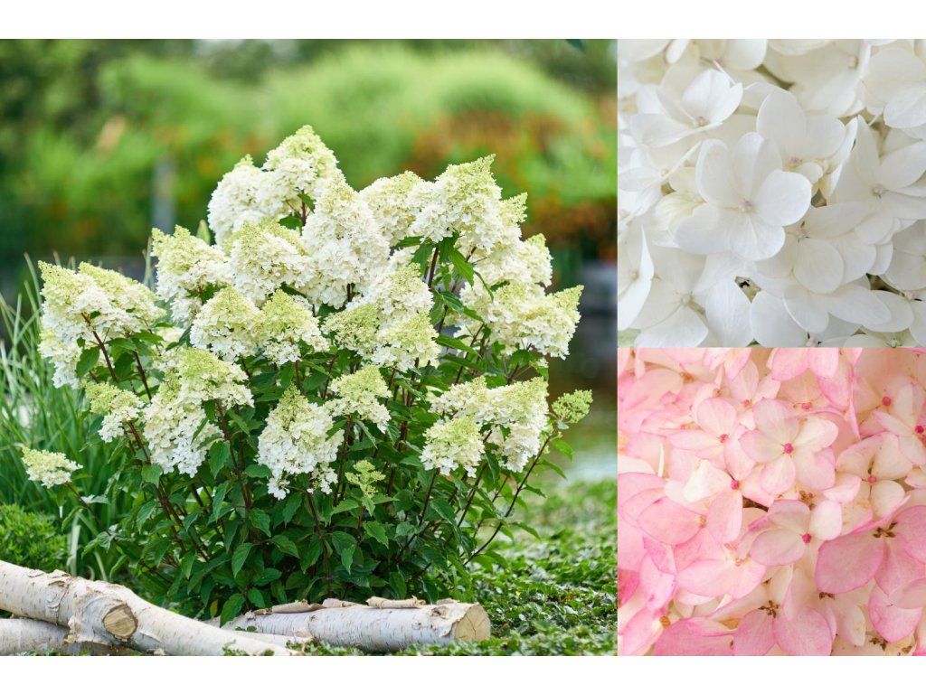 Rispenhortensie 'Magical Andes®' - gehört zur Gruppe der großblütigen Rispenhortensien-Kultivare mit ausgeprägter Farbveränderung der Blütenstände. Ein aufrechter, mittelstarker Strauch erreicht eine Höhe von 1,2–1,5 m und eine Breite von 0,8–1,2 m, wobei er eine kompakte Form beibehält. Die Blätter sind eiförmig, tiefgrün, können sich im Herbst gelblich verfärben und bilden einen Hintergrund für reiche Rispen. Kegelförmige Blütenstände erscheinen ab Mitte des Sommers in reinweißen Tönen, nehmen allmählich einen rosafarbenen Schimmer an und können am Ende der Saison kräftig rosarot sein. Sterile Blüten mit größeren Kelchblättern überdecken die fruchtbaren Blüten und verleihen den Rispen ein volles Aussehen. Die Sorte eignet sich als Solitärpflanze im Rasen, im hinteren Teil von gemischten Staudenbeeten, an Terrassen oder entlang von Wegen, wo sie einen ausgeprägten vertikalen Akzent setzt. In Pflanzungen ergänzt sie sich gut mit Ziergräsern, Rosen, Berberitzen oder dunkelblättrigen Sträuchern, die die hellen Blüten in der ersten Blütephase sowie die satten Farben am Ende der Saison hervorheben. Die Sorte ist anspruchslos in der Formgebung, treibt nach dem Schnitt zuverlässig aus und die Blütenstände können auch zum Schnitt und Trocknen verwendet werden.