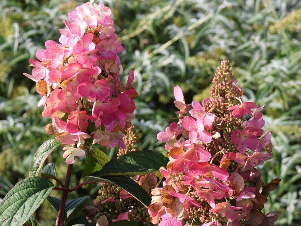 Anbau: Rispenhortensien sind in unseren Gärten sehr beliebt wegen ihrer Anspruchslosigkeit und hohen Frostbeständigkeit, die bis zu –30 °C reicht. Im Gegensatz zu anderen Arten blühen sie an neuem Holz, was bedeutet, dass Frost ihnen im Winter ihre Blüten nicht nimmt. Sie gedeihen am besten an einem sonnigen Standort, wo sie am intensivsten blühen, vertragen aber problemlos auch Halbschatten. Hinsichtlich des Bodens sind Rispenhortensien sehr anpassungsfähig und benötigen kein ausgesprochen saures Substrat; sie gedeihen am besten in leicht saurer bis neutraler, humoser Erde, die Feuchtigkeit gut speichert, aber nicht dauerhaft vernässt ist. Im Gegensatz zu Bauernhortensien beeinflusst der pH-Wert hier die Blütenfarbe nicht. Diese ändert sich natürlich mit dem Alter der Blüte und dem Absinken der Temperaturen, wobei der endgültige Farbton von der jeweiligen Sorte abhängt. Während einige Sorten bis zum Herbst schneeweiß oder limettengrün bleiben, färben sich andere zartrosa und wieder andere, wie zum Beispiel 'Vanilla Fraise' oder 'Wim's Red', gehen in tief weinrote Töne über. Ausreichende Feuchtigkeit ist entscheidend, daher ist eine regelmäßige und ausgiebige Bewässerung erforderlich, insbesondere in den Sommermonaten, wobei der Boden zwischen den Wassergaben nur leicht antrocknen sollte. Idealerweise sollte die Oberfläche um die Sträucher herum mit Rinde oder Hackschnitzeln gemulcht werden, was die Wurzeln vor Überhitzung schützt und die Verdunstung reduziert. Gedüngt wird vom Frühjahr bis Mitte Sommer mit Düngemitteln für blühende Gehölze oder Kompost, aber ab August wird die Stickstoffzufuhr reduziert, damit die Triebe bis zum Winter verholzen können. Grundlegend für den Erfolg ist ein tiefer Frühlingsschnitt, der im Vorfrühling durchgeführt wird, normalerweise Ende Februar oder im März, wobei die letztjährigen Triebe auf zwei bis drei Knospenpaare gekürzt werden. Dies sorgt für einen dichten Strauch, feste Stiele und große Blütenstände. Beim Anbau in Behältern ist es notwendig, ausreichend große Töpfe mit Abfluss und hochwertige, humose Erde zu wählen, wobei es ratsam ist, den Behälter für den Winter zu isolieren. Zur Vorbeugung gegen Krankheiten und Schädlinge sind vor allem ein luftiger Standort und eine Bewässerung, die direkt auf die Wurzeln und nicht auf die Blätter gerichtet ist, wichtig.