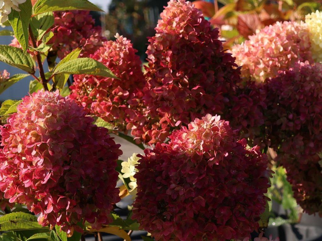 Anbau: Rispenhortensien sind in unseren Gärten sehr beliebt wegen ihrer Anspruchslosigkeit und hohen Frostbeständigkeit, die bis zu –30 °C reicht. Im Gegensatz zu anderen Arten blühen sie an neuem Holz, was bedeutet, dass Frost ihnen im Winter ihre Blüten nicht nimmt. Sie gedeihen am besten an einem sonnigen Standort, wo sie am intensivsten blühen, vertragen aber problemlos auch Halbschatten. Hinsichtlich des Bodens sind Rispenhortensien sehr anpassungsfähig und benötigen kein ausgesprochen saures Substrat; sie gedeihen am besten in leicht saurer bis neutraler, humoser Erde, die Feuchtigkeit gut speichert, aber nicht dauerhaft vernässt ist. Im Gegensatz zu Bauernhortensien beeinflusst der pH-Wert hier die Blütenfarbe nicht. Diese ändert sich natürlich mit dem Alter der Blüte und dem Absinken der Temperaturen, wobei der endgültige Farbton von der jeweiligen Sorte abhängt. Während einige Sorten bis zum Herbst schneeweiß oder limettengrün bleiben, färben sich andere zartrosa und wieder andere, wie zum Beispiel 'Vanilla Fraise' oder 'Wim's Red', gehen in tief weinrote Töne über. Ausreichende Feuchtigkeit ist entscheidend, daher ist eine regelmäßige und ausgiebige Bewässerung erforderlich, insbesondere in den Sommermonaten, wobei der Boden zwischen den Wassergaben nur leicht antrocknen sollte. Idealerweise sollte die Oberfläche um die Sträucher herum mit Rinde oder Hackschnitzeln gemulcht werden, was die Wurzeln vor Überhitzung schützt und die Verdunstung reduziert. Gedüngt wird vom Frühjahr bis Mitte Sommer mit Düngemitteln für blühende Gehölze oder Kompost, aber ab August wird die Stickstoffzufuhr reduziert, damit die Triebe bis zum Winter verholzen können. Grundlegend für den Erfolg ist ein tiefer Frühlingsschnitt, der im Vorfrühling durchgeführt wird, normalerweise Ende Februar oder im März, wobei die letztjährigen Triebe auf zwei bis drei Knospenpaare gekürzt werden. Dies sorgt für einen dichten Strauch, feste Stiele und große Blütenstände. Beim Anbau in Behältern ist es notwendig, ausreichend große Töpfe mit Abfluss und hochwertige, humose Erde zu wählen, wobei es ratsam ist, den Behälter für den Winter zu isolieren. Zur Vorbeugung gegen Krankheiten und Schädlinge sind vor allem ein luftiger Standort und eine Bewässerung, die direkt auf die Wurzeln und nicht auf die Blätter gerichtet ist, wichtig.