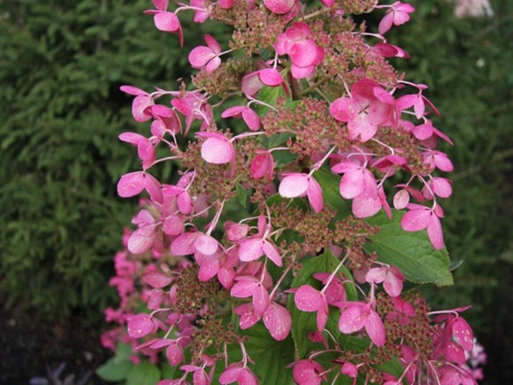 Die Rispenhortensie stellt eine schöne Pflanzenart dar, die zur Familie der Hortensiengewächse (Hydrangeaceae) gehört. Ursprünglich aus Südostchina und Japan stammend, kommt sie natürlicherweise an den Rändern von Bambusbeständen und entlang lichter Wälder an Wasserläufen vor. Dieser Strauch erreicht oft eine Höhe zwischen 1,5 und 3 m. Die Blätter sind wechselständig, spitz und gezähnt. Charakteristisch sind die kegelförmigen Blütenstände, die aus vielen kleinen Blüten bestehen. Die Blüten erscheinen ursprünglich weiß, ändern aber im Laufe der Zeit ihre Farbe zu Rosa- und Rottönen, abhängig von der Entwicklung und den pH-Wert-Änderungen im Boden. Die Rispenhortensie gedeiht auf gut durchlässigen Böden mit ausreichend Sonnenlicht und Halbschatten. Obwohl sie kälteresistent ist, sind ihre optimalen Wachstumsbedingungen mit wärmerem Klima verbunden. Sie benötigt regelmäßige Bewässerung und bevorzugt einen Boden mit neutralem bis leicht saurem pH-Wert für eine optimale Farbentwicklung der Blüten. Die Blütezeit liegt in den Sommermonaten bis in den frühen Herbst, wobei die Blüten lange an der Pflanze verbleiben können. Die Blüten sind für Bestäuber wie Schmetterlinge attraktiv, was zur Steigerung der Biodiversität in Ihrem Garten beiträgt. Die Rispenhortensie wird häufig in der Gartengestaltung und Landschaftsarchitektur für ihren ästhetischen Wert eingesetzt. Sie ist auch eine beliebte Pflanze für Schnittblumen und getrocknete Blüten, die in der dekorativen Kunst Verwendung finden. Mit ihrer Fähigkeit, sich an verschiedene Anbaubedingungen anzupassen, und ihrem hervorragenden ästhetischen Erscheinungsbild hat die Rispenhortensie die Anerkennung von Gärtnern, Landschaftsarchitekten und Pflanzenliebhabern gewonnen. Eine einzigartige Pflanze, die nicht nur die Ästhetik des Gartens bereichert, sondern auch einen biologischen und ökologischen Wert bietet.
