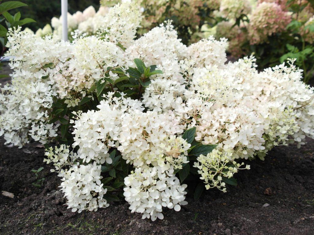 Rispenhortensie Groundbreaker® 'Blush' - gehört zu den modernen kompakten Sorten der Rispenhortensie, gezüchtet für kleinere Gärten und städtische Pflanzungen. Die Art stammt aus Ostasien, wo sie an den Rändern feuchter Wälder und an Berghängen wächst, in der Kultur wird sie jedoch hauptsächlich als Zierstrauch mit hoher Anwendungsvielfalt eingesetzt. Groundbreaker Blush bildet einen niedrigen, dicht verzweigten Strauch von etwa 0,4 bis 0,6 m Höhe bei vergleichbarer Breite. Die Blätter sind eiförmig, mittelgrün, mit fein gesägtem Rand. Die kleineren, aber zahlreichen Blütenstände haben anfangs cremeweiße Farbtöne, die sich im Laufe des Sommers zu Rosa verfärben und gegen Ende der Saison oft wärmere, leicht altrosa Töne annehmen. Dank seines kompakten Wuchses eignet sich dieser Kultivar für den Vordergrund von gemischten Beeten, zur Wegbegrenzung, für niedrige Blütenstreifen unter höheren Sträuchern sowie für Kübel auf Terrassen und Balkonen, wo er Ziergräser oder niedrigere Nadelgehölze ergänzt. Aufgrund seines niedrigen Wuchses eignet er sich hervorragend als niedrigere Ergänzung zu höheren Sträuchern oder für die Kultur im Kübel. Bei der Pflanzung einer größeren Anzahl von Setzlingen kann er auch zur Bedeckung eines unansehnlich aussehenden Flächenteils verwendet werden.