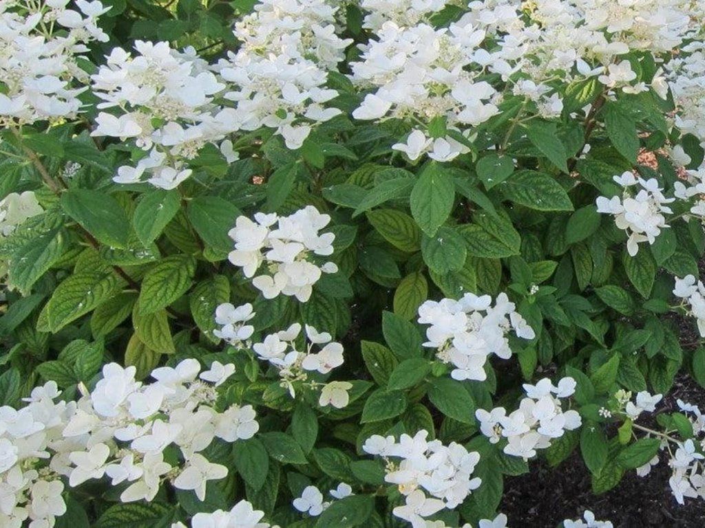 Rispenhortensie WHITE DIAMONDS 'Hypmad I' - eine kompakte und sehr widerstandsfähige Sorte, die für ihre Fähigkeit gezüchtet wurde, auch bei heißen Sommerbedingungen reichlich zu blühen, ohne dass die Blüten braun werden. Sie wächst aufrecht und dicht und erreicht im ausgewachsenen Zustand eine Höhe und Breite von etwa 1,2 Metern, was sie zur idealen Wahl für kleinere Gärten und moderne Kübelpflanzungen macht. Die Blätter sind tiefgrün, oval und bilden einen dichten, undurchdringlichen Strauch. Diese Sorte blüht von Juli bis September und bildet sehr volle, kegelförmige Blütenstände auf kräftigen Stielen. Die Blüten öffnen sich in einem reinen Weiß, das sehr stabil ist und lange anhält, bevor sie im Herbst einen zarten, puderrosa Farbton annehmen. Die Pflanze ist voll frosthart und blüht am diesjährigen Holz, sodass ein Frühlingsschnitt die Bildung neuer, großer Blütenstände fördert. Im Garten eignet sich diese Sorte vor allem als niedriger blühender Rand, in Flächenbepflanzungen oder als eleganter Solitär auf Terrassen und Balkonen.