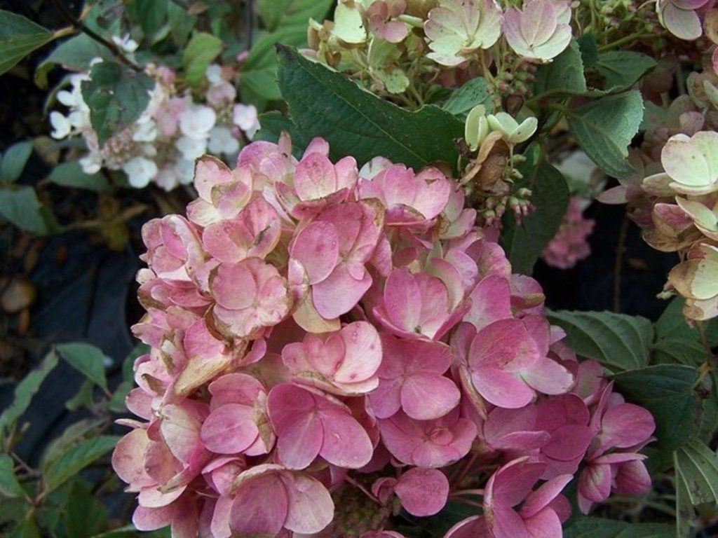 Anbau: Rispenhortensien sind in unseren Gärten sehr beliebt wegen ihrer Anspruchslosigkeit und hohen Frostbeständigkeit, die bis zu –30 °C reicht. Im Gegensatz zu anderen Arten blühen sie an neuem Holz, was bedeutet, dass Frost ihnen im Winter ihre Blüten nicht nimmt. Sie gedeihen am besten an einem sonnigen Standort, wo sie am intensivsten blühen, vertragen aber problemlos auch Halbschatten. Hinsichtlich des Bodens sind Rispenhortensien sehr anpassungsfähig und benötigen kein ausgesprochen saures Substrat; sie gedeihen am besten in leicht saurer bis neutraler, humoser Erde, die Feuchtigkeit gut speichert, aber nicht dauerhaft vernässt ist. Im Gegensatz zu Bauernhortensien beeinflusst der pH-Wert hier die Blütenfarbe nicht. Diese ändert sich natürlich mit dem Alter der Blüte und dem Absinken der Temperaturen, wobei der endgültige Farbton von der jeweiligen Sorte abhängt. Während einige Sorten bis zum Herbst schneeweiß oder limettengrün bleiben, färben sich andere zartrosa und wieder andere, wie zum Beispiel 'Vanilla Fraise' oder 'Wim's Red', gehen in tief weinrote Töne über. Ausreichende Feuchtigkeit ist entscheidend, daher ist eine regelmäßige und ausgiebige Bewässerung erforderlich, insbesondere in den Sommermonaten, wobei der Boden zwischen den Wassergaben nur leicht antrocknen sollte. Idealerweise sollte die Oberfläche um die Sträucher herum mit Rinde oder Hackschnitzeln gemulcht werden, was die Wurzeln vor Überhitzung schützt und die Verdunstung reduziert. Gedüngt wird vom Frühjahr bis Mitte Sommer mit Düngemitteln für blühende Gehölze oder Kompost, aber ab August wird die Stickstoffzufuhr reduziert, damit die Triebe bis zum Winter verholzen können. Grundlegend für den Erfolg ist ein tiefer Frühlingsschnitt, der im Vorfrühling durchgeführt wird, normalerweise Ende Februar oder im März, wobei die letztjährigen Triebe auf zwei bis drei Knospenpaare gekürzt werden. Dies sorgt für einen dichten Strauch, feste Stiele und große Blütenstände. Beim Anbau in Behältern ist es notwendig, ausreichend große Töpfe mit Abfluss und hochwertige, humose Erde zu wählen, wobei es ratsam ist, den Behälter für den Winter zu isolieren. Zur Vorbeugung gegen Krankheiten und Schädlinge sind vor allem ein luftiger Standort und eine Bewässerung, die direkt auf die Wurzeln und nicht auf die Blätter gerichtet ist, wichtig.