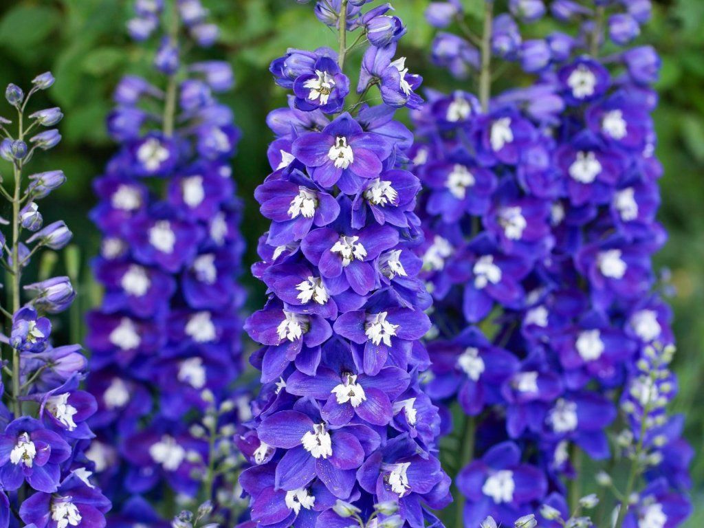 Rittersporn 'Delgenius Kingsley' - eine perfekte Staude für sonnige Standorte, die absolut atemberaubende Blütenstände voller großer, tiefvioletter bis violett-blauer Blüten mit einem weißen, leuchtenden 'Auge' hervorbringt. Die Blütenstände eignen sich auch zum Schnitt. Sie blühen von Juni bis August. Die Pflanze erreicht eine Höhe von 60 cm bei etwa gleicher Breite.