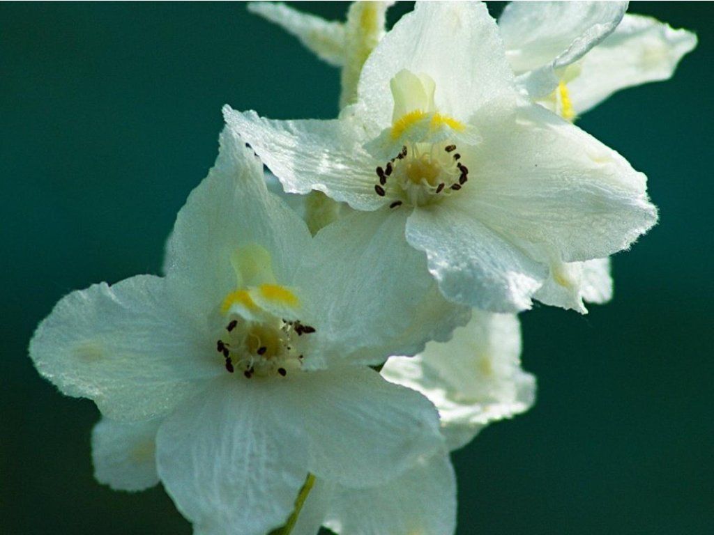 Rittersporn x belladonna 'Casa Blanca' - eine hohe, schön blühende Pflanze mit grünen, geteilten, laubabwerfenden Blättern. Blüht mit fünfteiligen, reinweißen Blüten an aufrechten Stielen von Juni bis August. Das Entfernen verblühter Blüten verlängert die Blütezeit. Liebt sonnige Standorte, verträgt auch Halbschatten, wo sie jedoch weniger blüht. Der Boden muss durchlässig, leicht feucht und nährstoffreich sein. Blühende Stiele werden oft an einer Stütze angebunden, damit der Wind sie nicht zerstört. Die Frostbeständigkeit wird bis -27 °C angegeben. Geeignet für Staudenbeete.