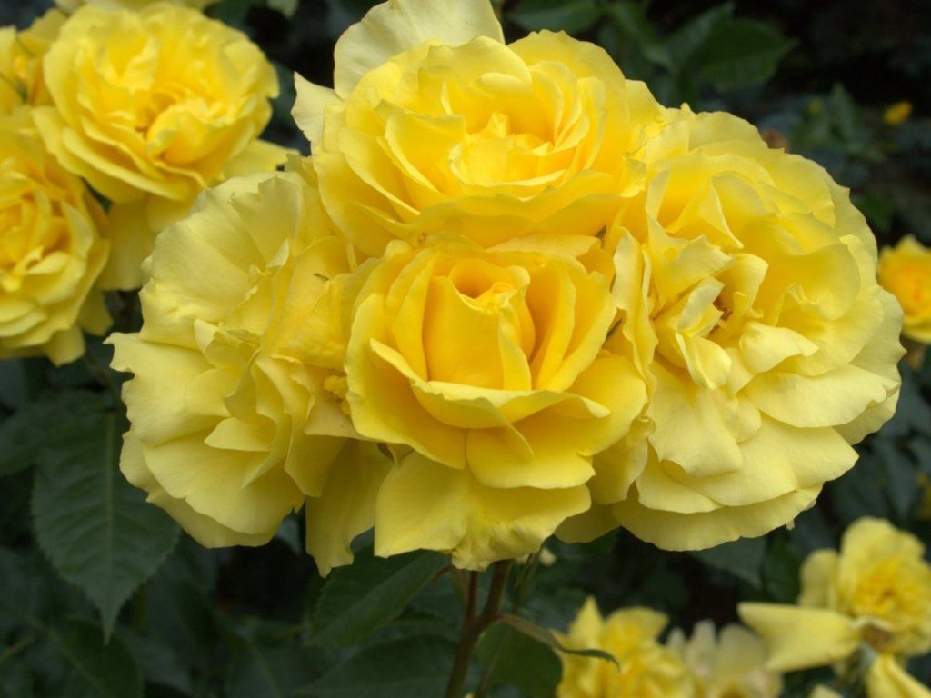 Rose 'Allgold' - attraktive Rose aus der Züchtung von E. Ile de France. Le Grice, es handelt sich um eine gelbe Sorte mit frühem Beginn und anhaltender Blüte bis in den Herbst. Sie wächst als kompakter, dicht verzweigter Strauch mit aufrechten bis leicht überhängenden Trieben. Sie erreicht eine Höhe von 50-70 cm und eine Breite von 50–60 cm. Die Blätter sind dunkelgrün, deutlich glänzend und treiben im Frühjahr leicht rötlich aus. Die Blüten sind goldgelb, halbgefüllt bis gefüllt, im Durchmesser 6-8 cm, oft in Büscheln von mehreren Stücken. Die Farbe bleibt auch bei voller Sonne und Regen rein. Der Duft ist leicht bis mittelstark, frisch. Die Blüte erfolgt wiederholt von Juni bis Oktober, mit einem frühen Beginn im Frühsommer und regelmäßigen Wellen bis in den Herbst. Sie eignet sich hervorragend für niedrige Beete und Randbepflanzungen, wo ihre gelbe Blüte die Fläche zu einem harmonischen Ganzen vereint. In der Komposition harmoniert sie gut mit blau und lila blühenden Stauden, zum Beispiel Salbei, Ehrenpreis und Lavendel, sowie mit zarten Gräsern der Gattung Stipa oder Festuca. Dank ihrer stabilen Stiele und mittleren Blüten eignet sie sich auch zum Schnitt für kleinere Sträuße. Sie wächst als kompakter, dicht verzweigter Strauch mit aufrechten bis leicht überhängenden Trieben. Sie erreicht eine Höhe von 50-70 cm und eine Breite von 50–60 cm. Die Blätter sind dunkelgrün, deutlich glänzend und treiben im Frühjahr leicht rötlich aus. Die Blüten sind goldgelb, halbgefüllt bis gefüllt, im Durchmesser 6-8 cm, oft in Büscheln von mehreren Stücken. Die Farbe bleibt auch bei voller Sonne und Regen rein. Der Duft ist leicht bis mittelstark, frisch. Die Blüte erfolgt wiederholt von Juni bis Oktober, mit einem frühen Beginn im Frühsommer und regelmäßigen Wellen bis in den Herbst. Sie eignet sich hervorragend für niedrige Beete und Randbepflanzungen, wo ihre gelbe Blüte die Fläche zu einem harmonischen Ganzen vereint. In der Komposition harmoniert sie gut mit blau und lila blühenden Stauden, zum Beispiel Salbei, Ehrenpreis und Lavendel, sowie mit zarten Gräsern der Gattung Stipa oder Festuca. Dank ihrer stabilen Stiele und mittleren Blüten eignet sie sich auch zum Schnitt für kleinere Sträuße.